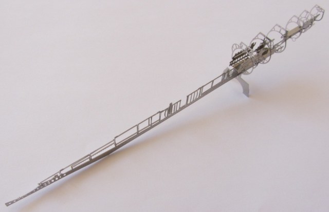 Заказ пришел быстро (порядка одной недели) в виде письмеца в конверте. В нем оказался целлофановый пакетик с пластинкой травленых деталей и инструкцией по сборке. Все отменного качества. Скачать инструкцию в оригинальном виде и посмотреть другие модели этого производителя можно здесь.