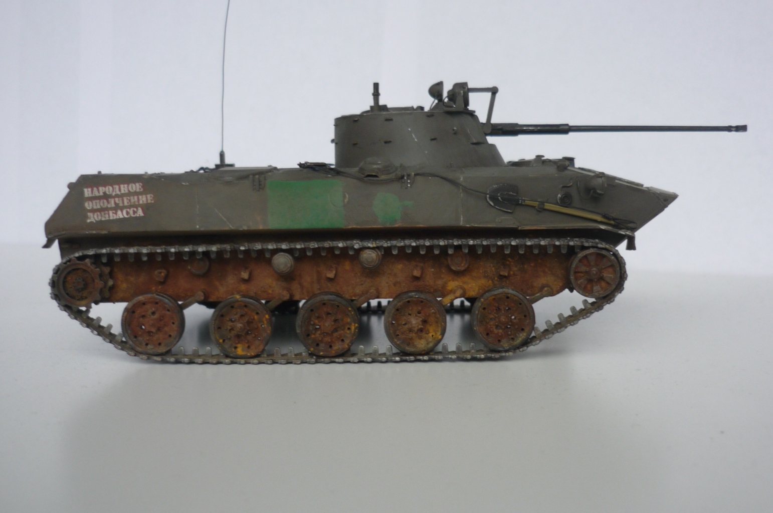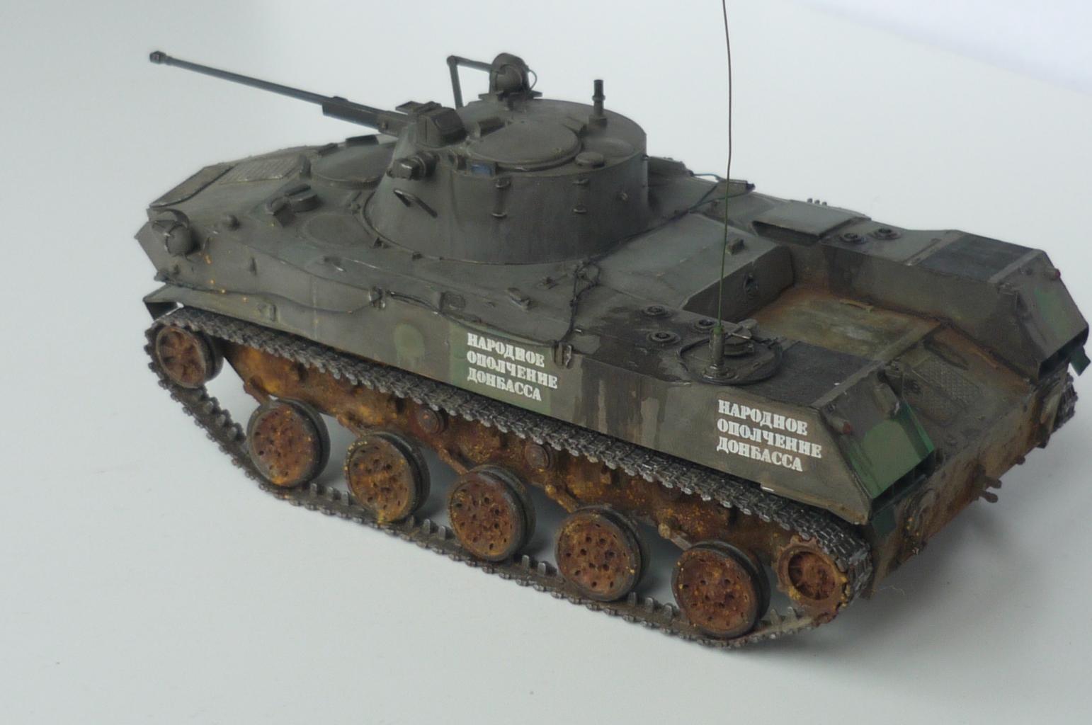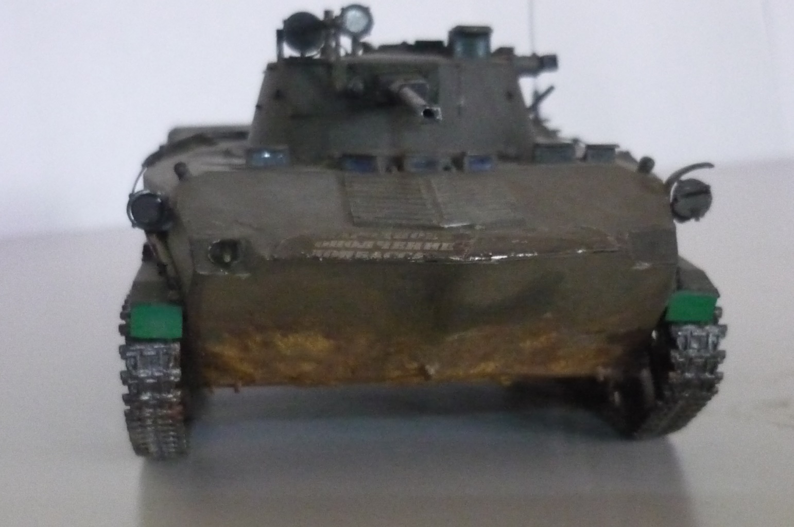 Моя первая попытка сделать модель максимально похожей на реальный объект. КИТ Звезда, пытался найти фототравление для модели, так и не нашел, пришлось делать самому, тоже самое со сборными траками - пришлось использовать родные, краски tamiya, в первый использовал пигменты и смывку (мне понравилось) и наверное местами переборщил. вот представляю, то что у меня получилось :)