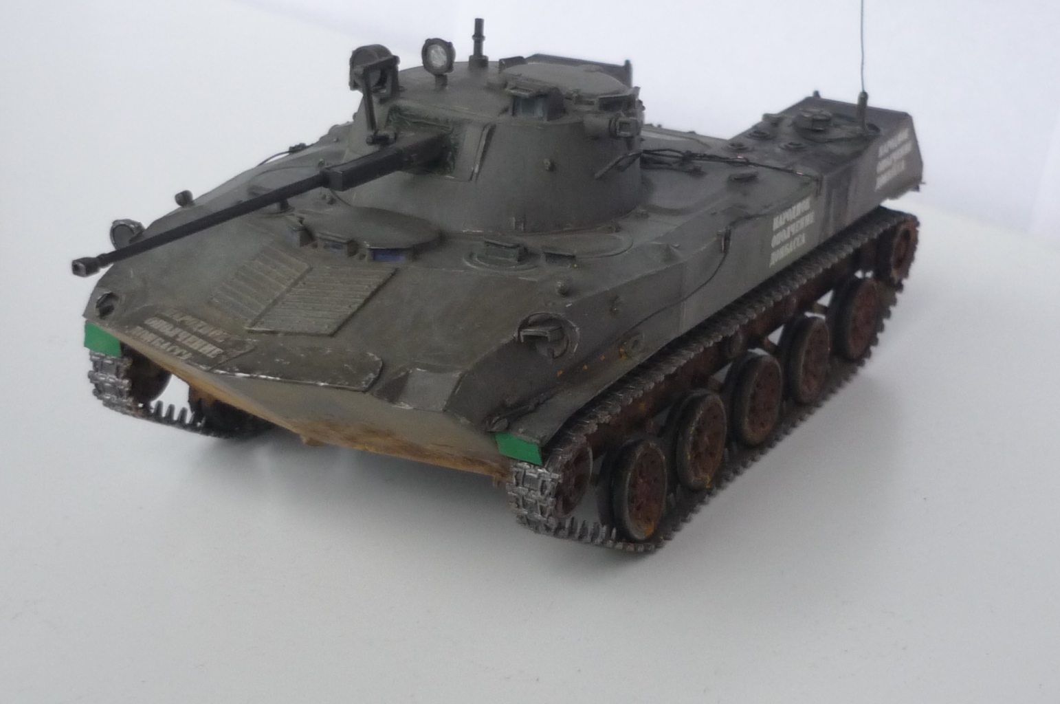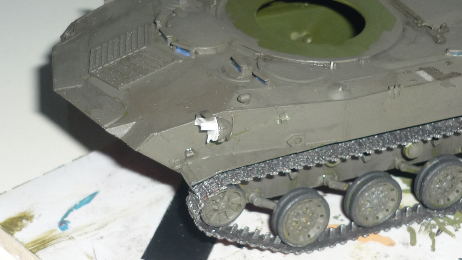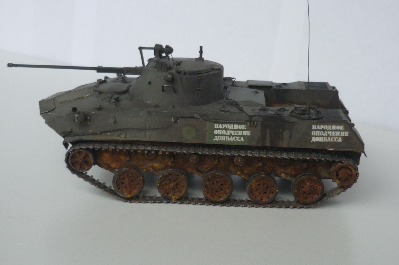 Моя первая попытка сделать модель максимально похожей на реальный объект. КИТ Звезда, пытался найти фототравление для модели, так и не нашел, пришлось делать самому, тоже самое со сборными траками - пришлось использовать родные, краски tamiya, в первый использовал пигменты и смывку (мне понравилось) и наверное местами переборщил. вот представляю, то что у меня получилось :)