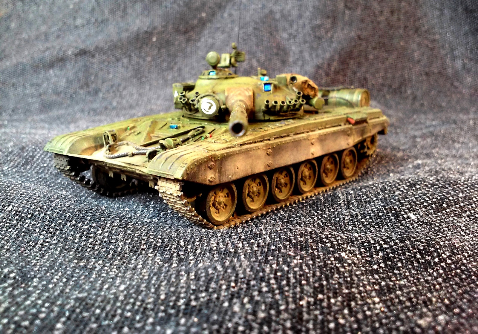 В очередной раз категорически приветствуя всех коллег, представляю вашему вниманию модель основного советского танка Т-72М (экспортная модификация) от Revell !!! От искоробочного варианта модель отличается только ЗПУ ( Modelcollect), ограждениями фар ( он же), топливопроводами и гусянкой ( от Т-90 Revell). Доработки минимальны: прицел наводчика, приборы наблюдения ком. башенки, проводка к мортиркам и поручни на ящике ЗИП, скатка из салфетки. Красил Валехо и Звездой, после смывка и пыление пигментами Мастер Пигмент, оптика из мишуры. На этом все !!!