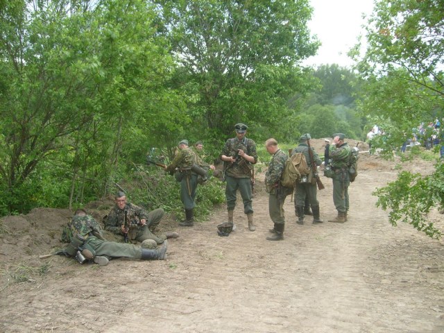 Всем привет. На днях в очередной раз побывал в самом любимом своем городе Санкт-Петербурге. Совершенно случайно узнал о проведении на месте боев на реке Воронка на Ораниенбаумском плацдарме исторической реконструкции. Как человек, мягко говоря, интересующийся историей битвы за Ленинград, не побывать на этом мероприятии я просто не имел права. Все очень понравилось. Желающие, за небольшую плату, могли прокатиться на броне советского или немецкого танка. А также могли выстрелить из реального боевого оружия (винтовки, автоматы, минометы и даже ПТРД), чем я и воспользовался, выбрав для этой цели трехлинейку. Присутствовали ММГ оружия той поры: ППШ, ППС, Томпсон, ДП и винтовки, подержать в руках и сфотографироваться с ними (а также с "немцами" и "нашими") можно было совершенно бесплатно. Сама реконструкция произвела просто неизгладимое впечатление, очень прочувствовал дух той поры. Было представлено всё - и немецкая полевая обедня, и нападение партизан на немецкого офицера (позже был "расстрелян"), гаубичная артподготовка, танковый бой, атаки и контратаки... В общем, не описать - это надо видеть. Из техники были Т-60, Т-70, Виллис, БТР Скаут, Мардер 2, PzKpfw 2 Ausf D. Ребята- реконструкторы очень, как мне показалось, соответствовали своим героям. И "немцы" похожи на немцев и "наши" на наших. У кого будет возможность сходить на подобное мероприятие - идите - не пожалеете.
