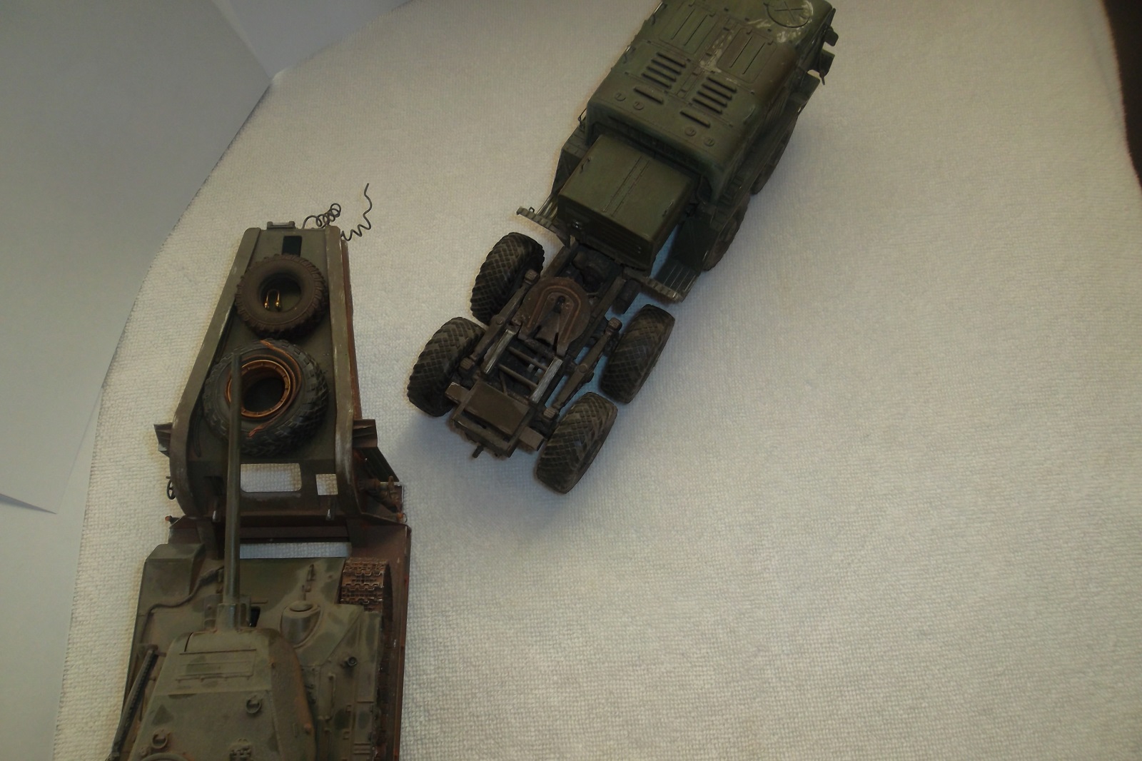 Да, да знаю. Ксеноном всё испортил. Первый опыт электрофикации. Краза не судите, неготов... Маз, маз собственно из каропки. Ничего нового. Ну разве, что водила от Маультира. Водилу не "пилил", остался гансом. И зеркала - зеркала. 34-ку отдам бонусом. Краски Тамия, эмаль. Что ещё сказать - не знаю.