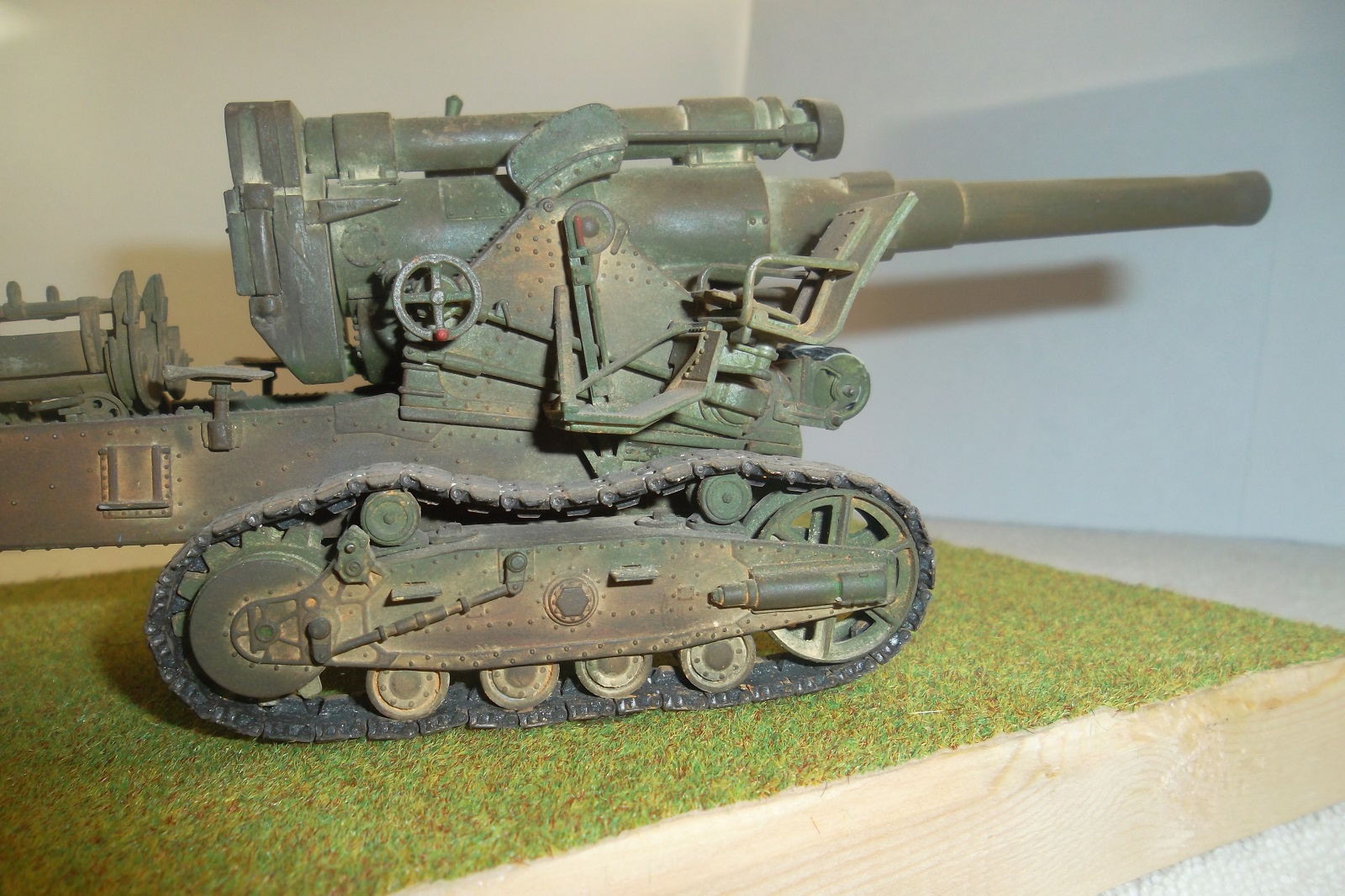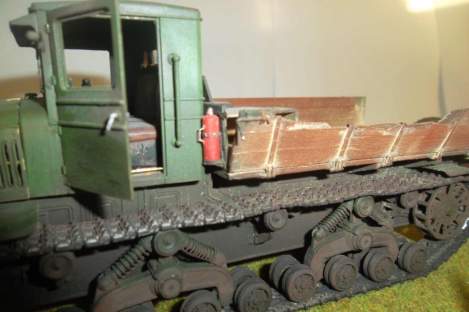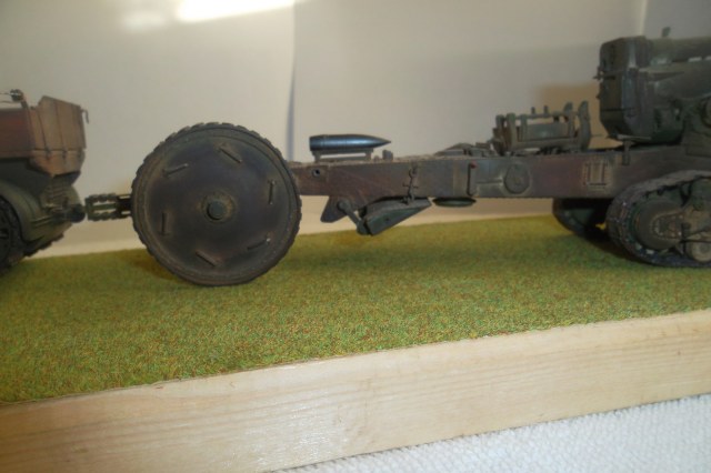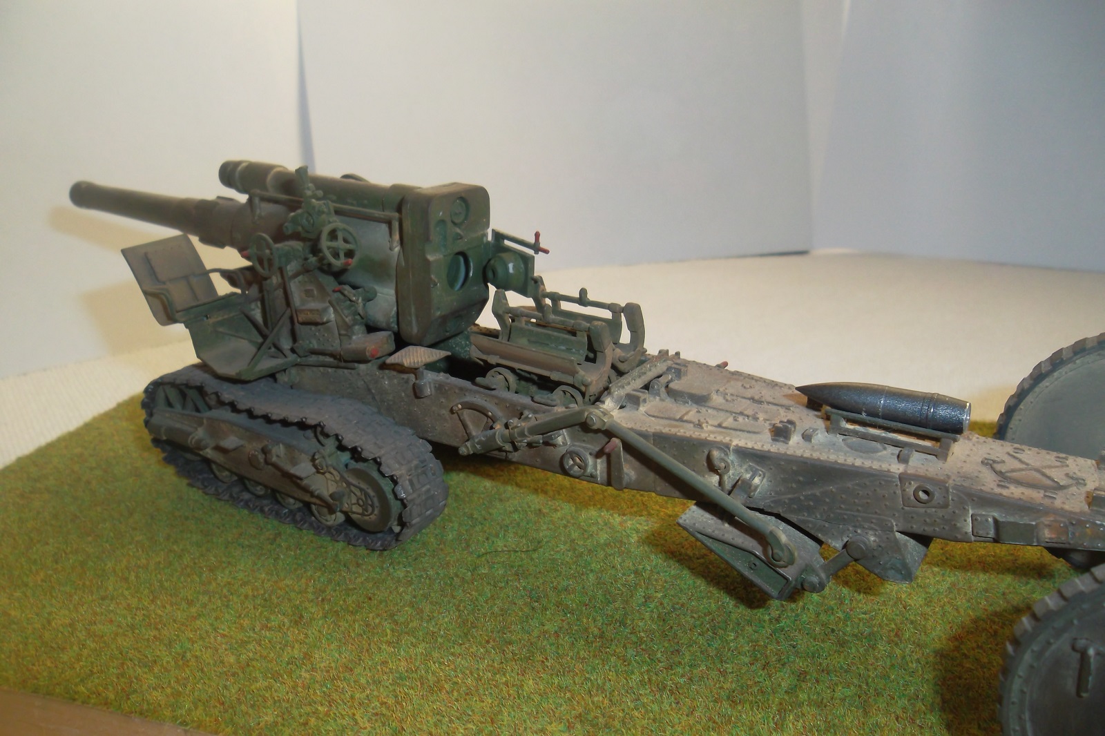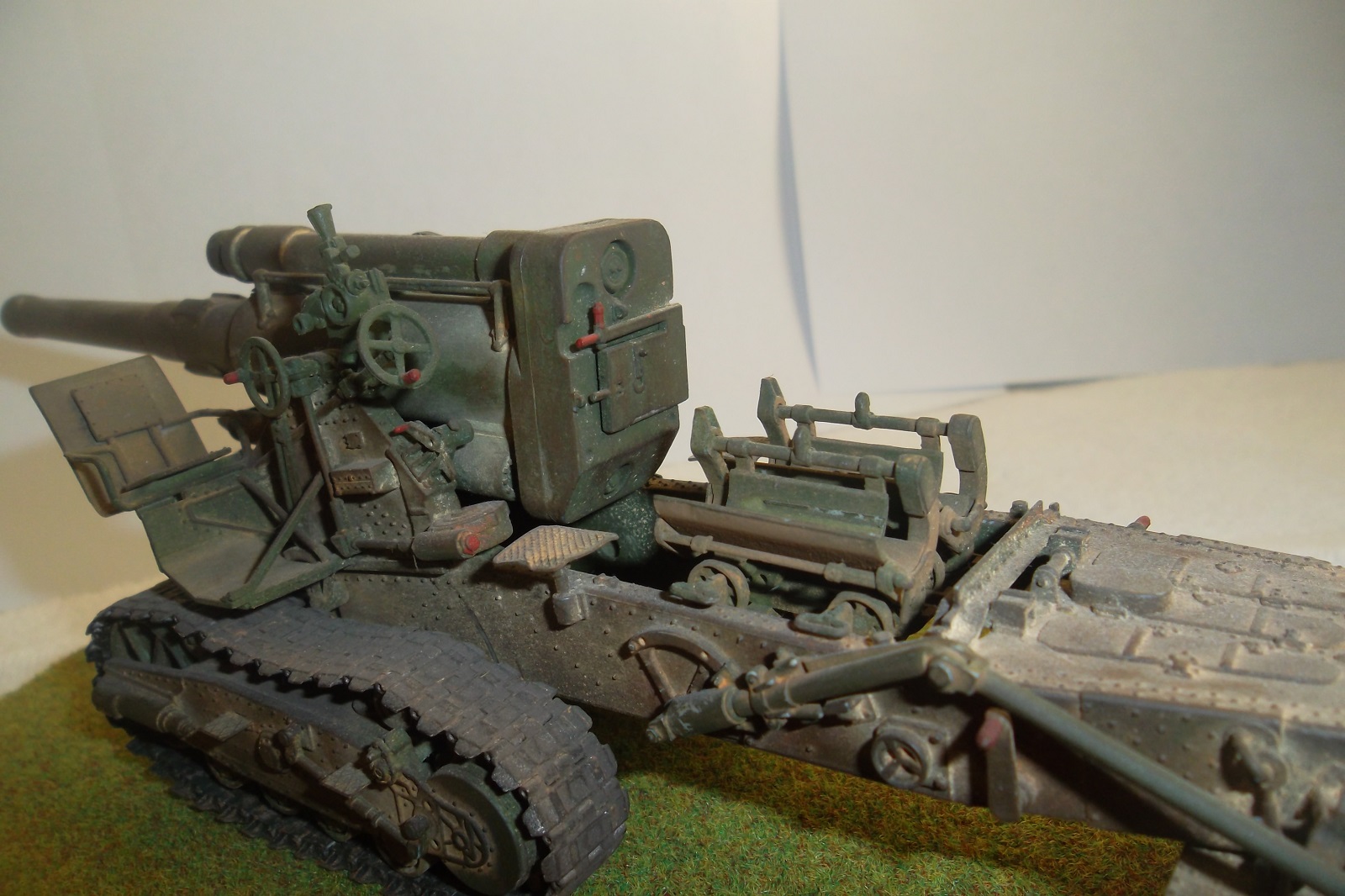 Касаемо Б-4, разве, что "гуси" "Фриул" и снаряды. В остальном - из каропка. Красил акрилом, звездовским. Тягач? Тягач в норме. Травление, чьё не помню. Помоему "Вояджер", не помню. Гуси "Фриул". С ходовкой конечно не очень. Всё видно. Без "Эльфа" не обошлось. Кузов полностью из флотской доски. Если постараться, можно открыть левый борт (вояджеру отдельное спасибо). Если ОЧЕНЬ! постараться, а главное захотеть, это сделать, можно и правый открыть... Вояджер, мать его... Задний борт вполне рабочий. И не надо в "косяки" тыкать... сам знаю. К модели теряю интерес на 90-95% готовности... Ну-у неинтересна она мне становится.