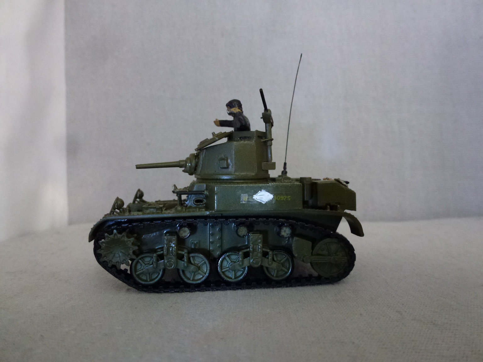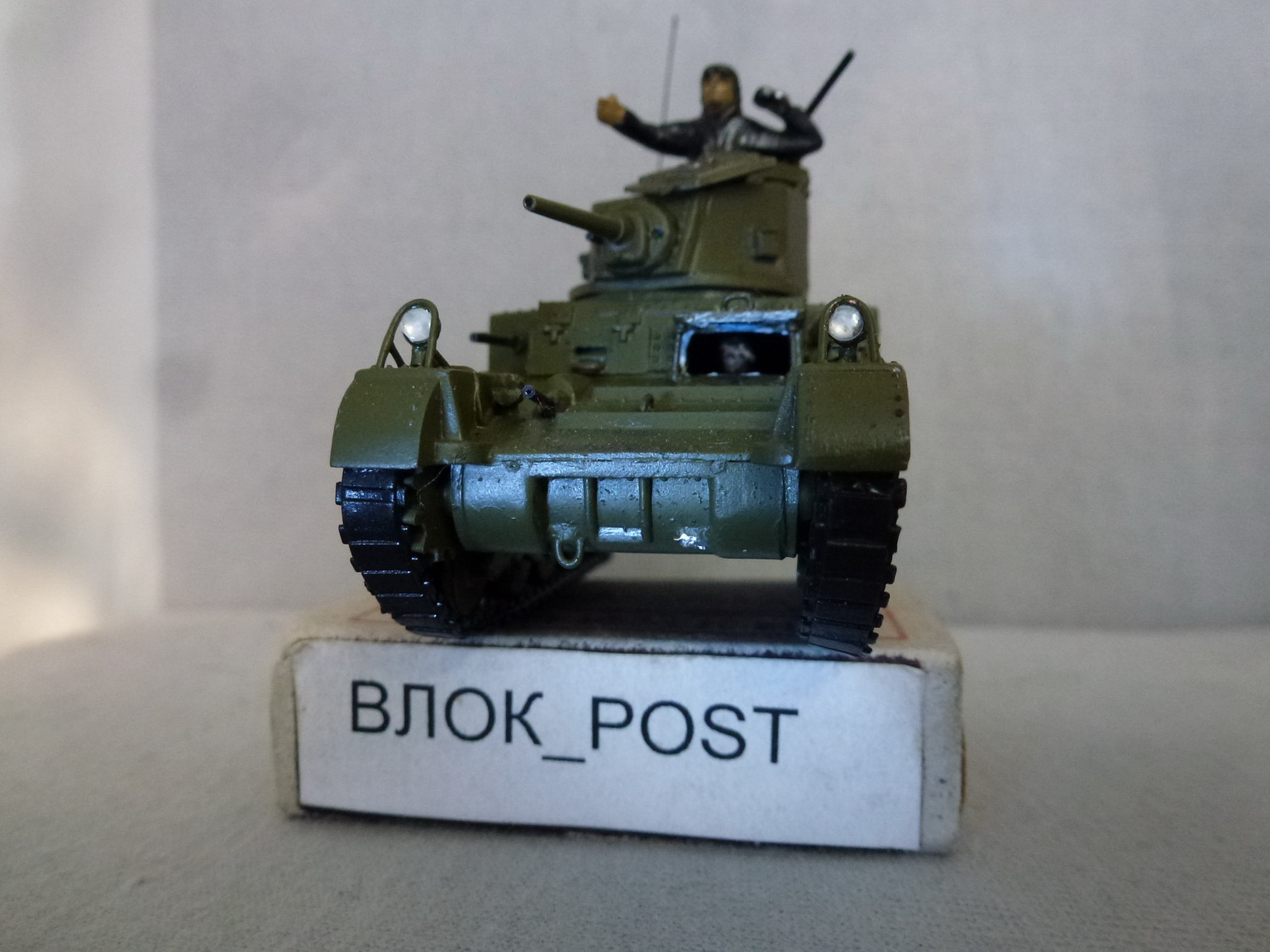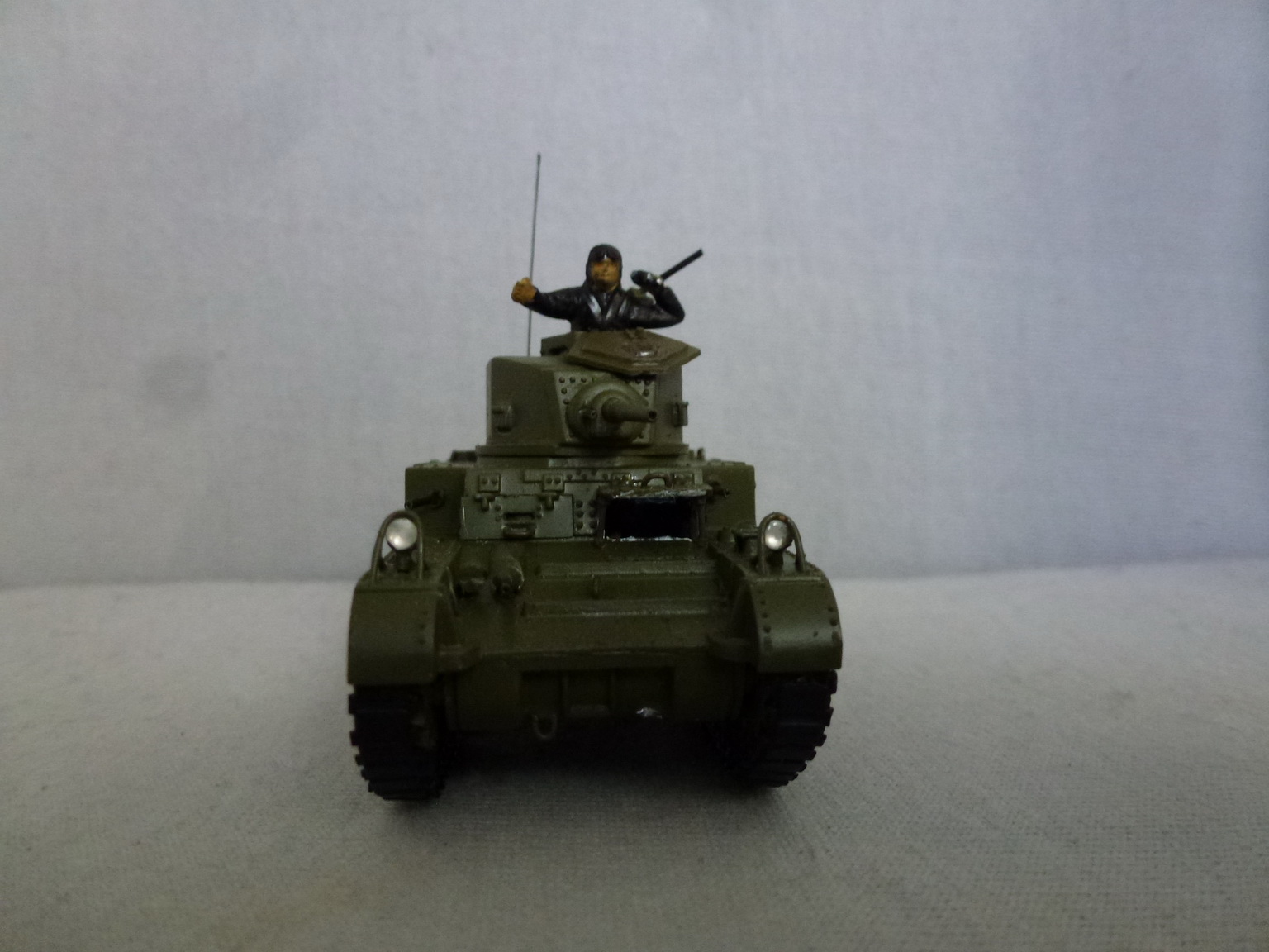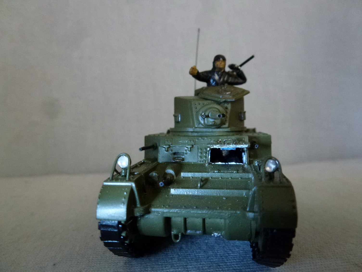 О модели.....Нравится - качественное литьё....резиновые гуси....люки мехвода и пулеметчика открываются.....Хреново - фары с ограждением отлиты целиком....для крепления боковых грязевых экранов сделаны большие проточки в крыльях....нет бортовых пулеметов....