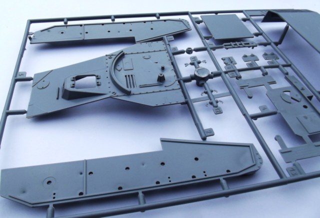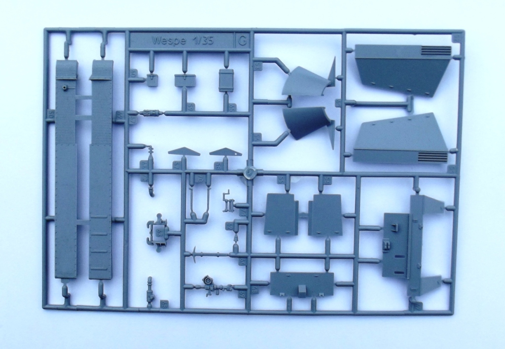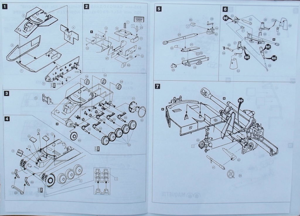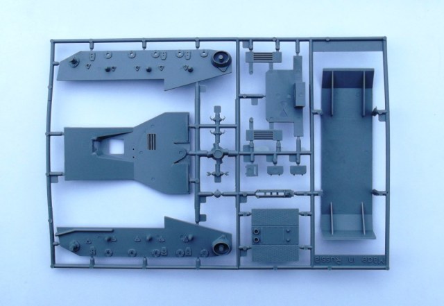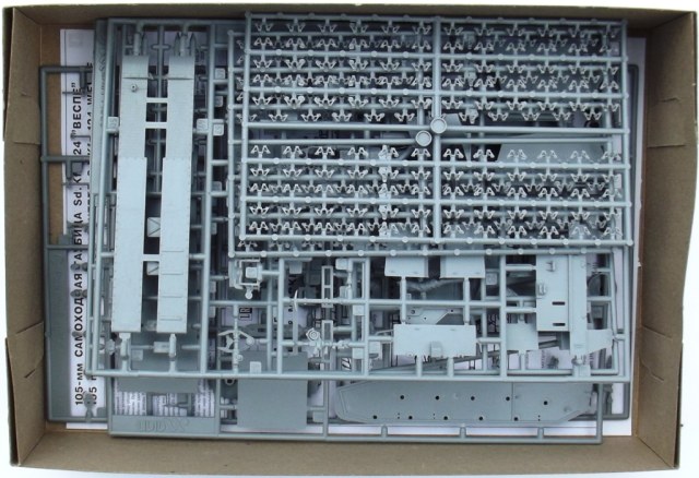 О модели; и так что мы имеем, в коробке из тонкого картона, с верхней загрузке, находятся ; 7 литников серого цвета из более менее прочного пластика, два из них с траками для гусеницы (гусянка сборная), ствол орудия (конечно же) из двух половинок, литники средней детализации, смещения пресс форм не обнаружено, облоя не так много (как ожидалось), следы от толкателей в основном на внутренних сторонах деталей. Имеется один "бонусный" литник с фигуркой немецкого солдата (того же качества). По стыкуемость не скажу, пока не проверял. Так же в наборе имеется одна "вырезка" (реально откуда то вырезана) подложка с декалями. Монохромная инструкция на трёх листах (4 страницы) по сборке и окраске модели, по инструкции все более или менее (относительно) понятно, предлагается три варианта окраски самоходки. Зато цена данного набора более чем приемлемая, точно не помню, в пределах 500-600 руб.