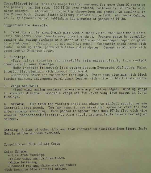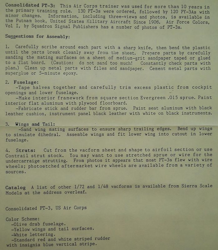 Вакуумформованная модель от фирмы Siera упакована в полиэтиленовый пакет. Масштаб 1/72 (номер по каталогу 72-6). Все детали отформованы на одном листе пластика с довольно неплохой проработкой. Двигатель и винт даются из белого металла.