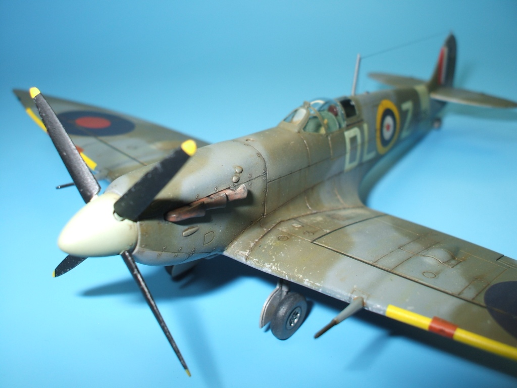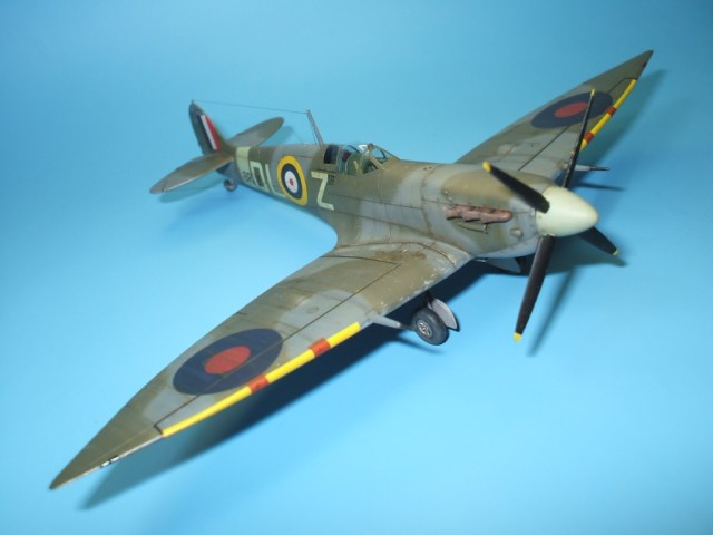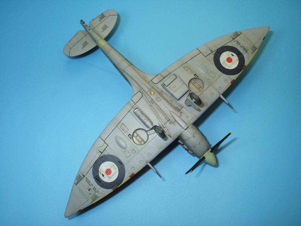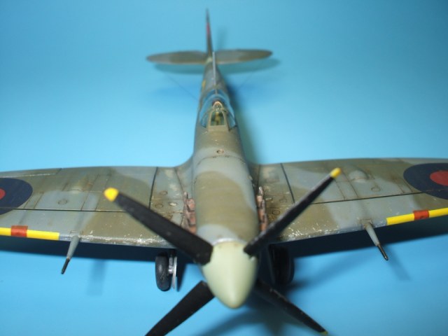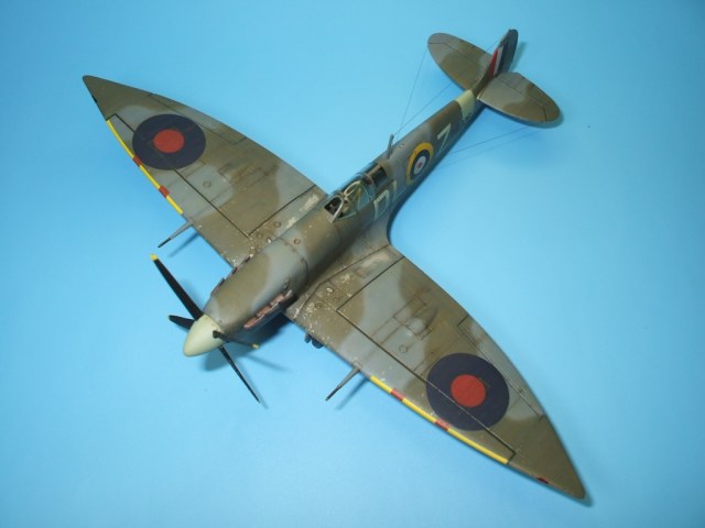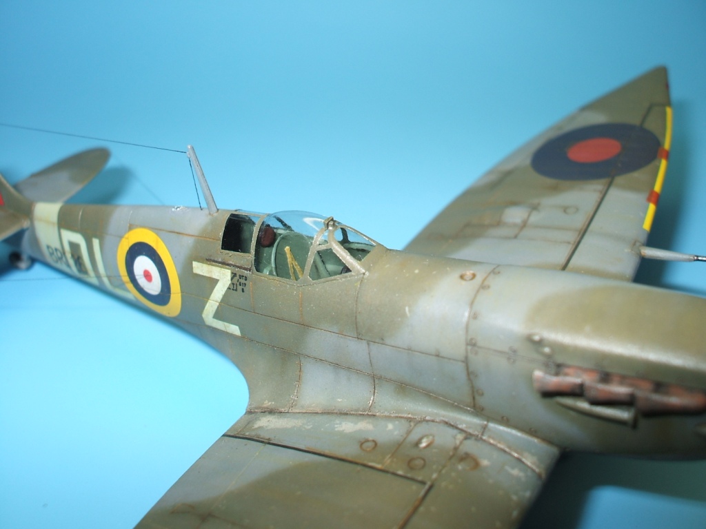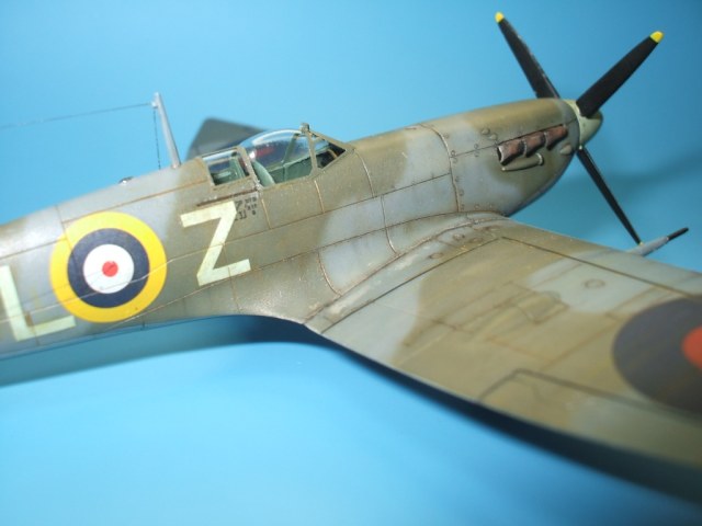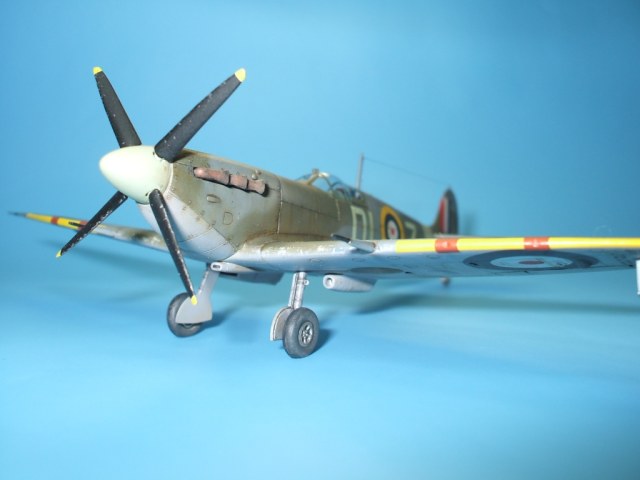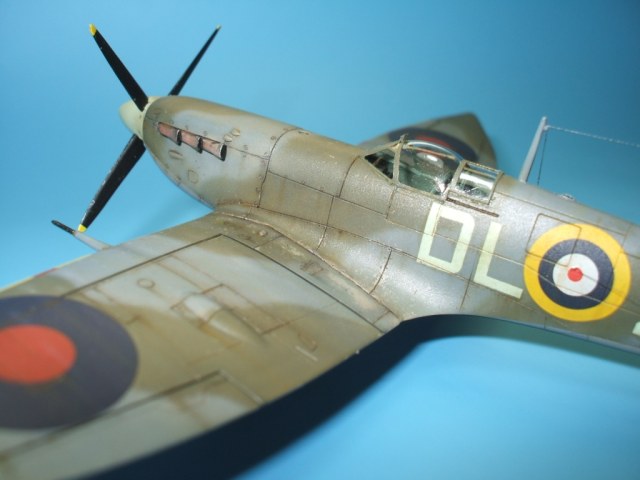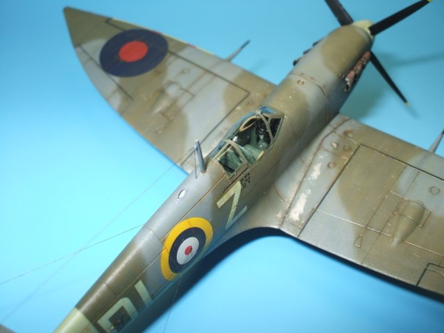 По модели: разработчик – фирма Italeriподошла к теме Спитфаера очень прогрессивно. Грамотно разбив модель, фирма смогла на основе одной прессформы, проводя не большие манипуляции, выпустить модели Спитфаера модификаций от Mk.V до Mk.IX. Но на этом вся прелесть модели и заканчивается. Если визуально модель и похожа на прототип, хотя и очень тощий, то деталировка и исполнение уж очень примитивны. Вроде бы неплохо выполнен расшив на фюзеляже – тонкий и четкий, но почему то вообще отсутствует обозначение зализа крыла с фюзеляжем. На плоскостях расшивка сильно проигрывает фюзеляжной, да и выполнена «на тему». Интерьер на столько примитивен, что слов не хватает. Ниши шасси очень мелкие. На фоне всего этого не плохо выполнен фонарь и в комплект входит отличного качества декаль.