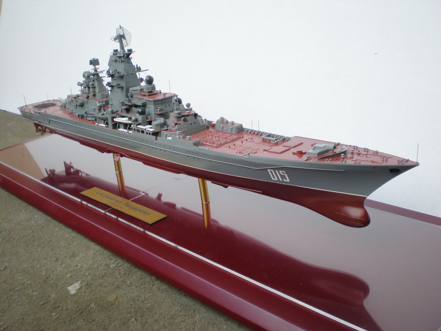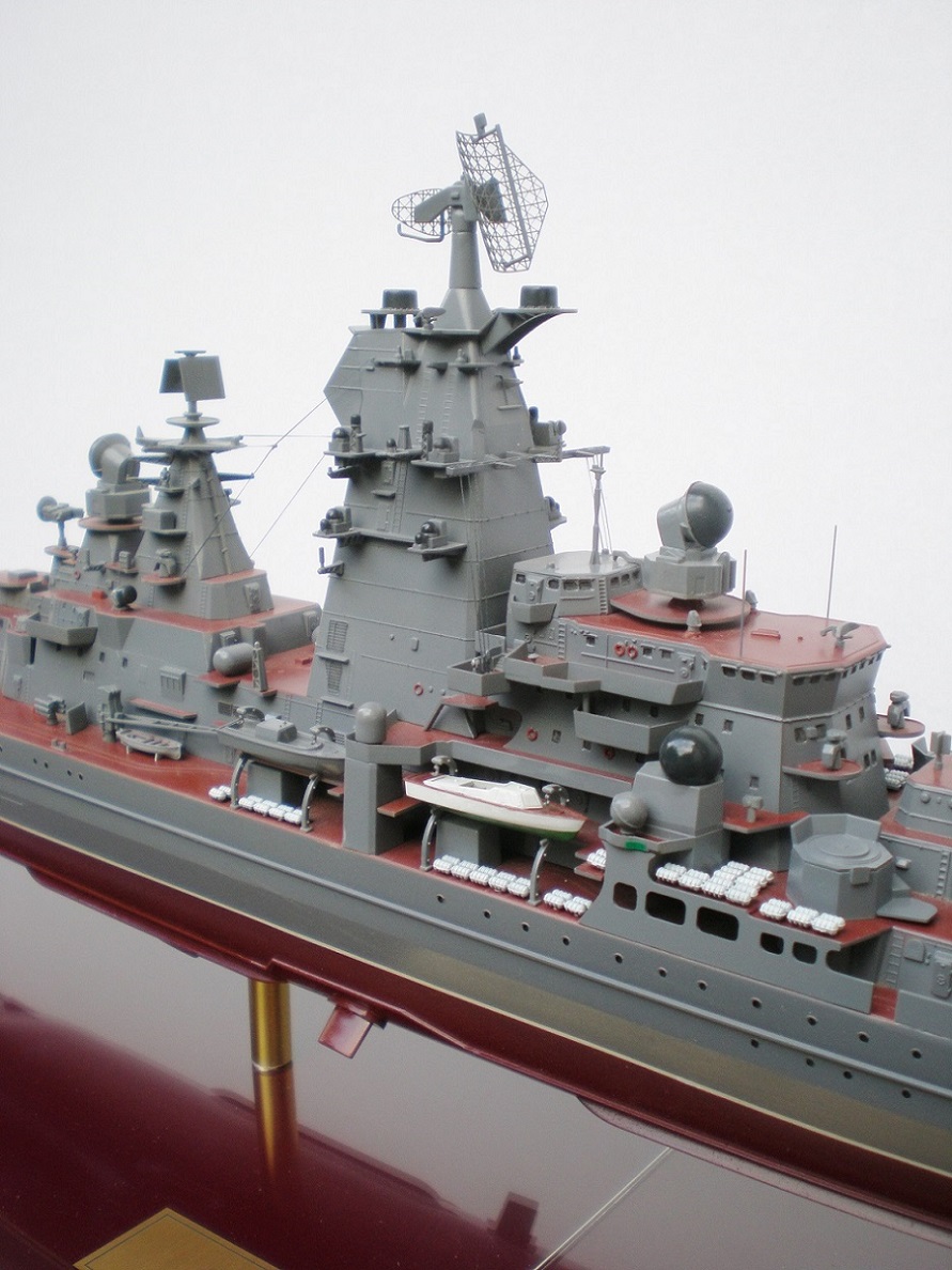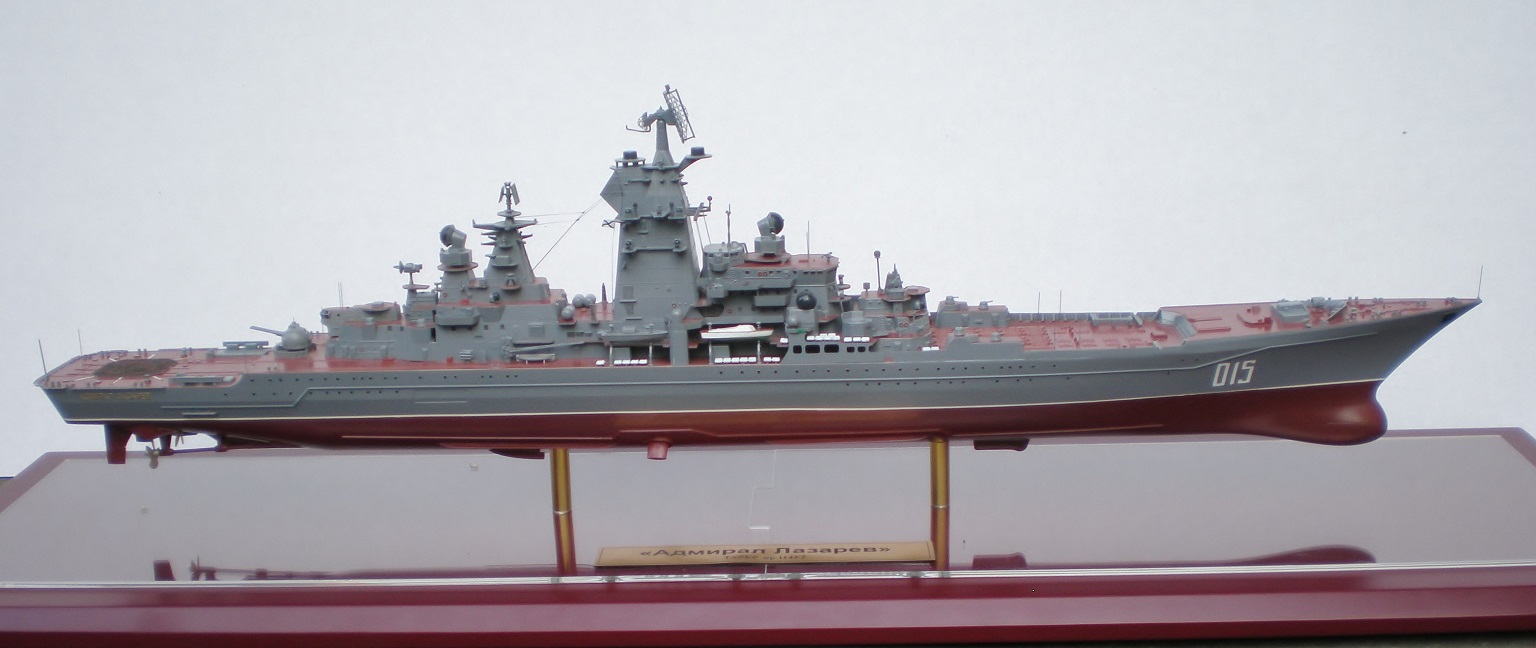 История стройки этой модели напоминает историю прототипа - к слову, судьба бывшего "Фрунзе" пока до конца не ясна: в прошлом году его поставили в док (ну явно не для разделки) - но реакторы из него выгружены ещё лет 10 назад... С другой стороны, ГШ ВМФ грозит разделать его в будущем году. Возможности нашей промышленности строить подобные корабли в будущем стремится к нулю. Может, на средства сэкономленные на Менструалях, его таки отремонтируют? Слышал, что экипаж очень болезненно воспринял переименование из "Фрунзе" - не забывайте, что выпускники ВВМУ им. Фрунзе называли себя "фрунзачами".