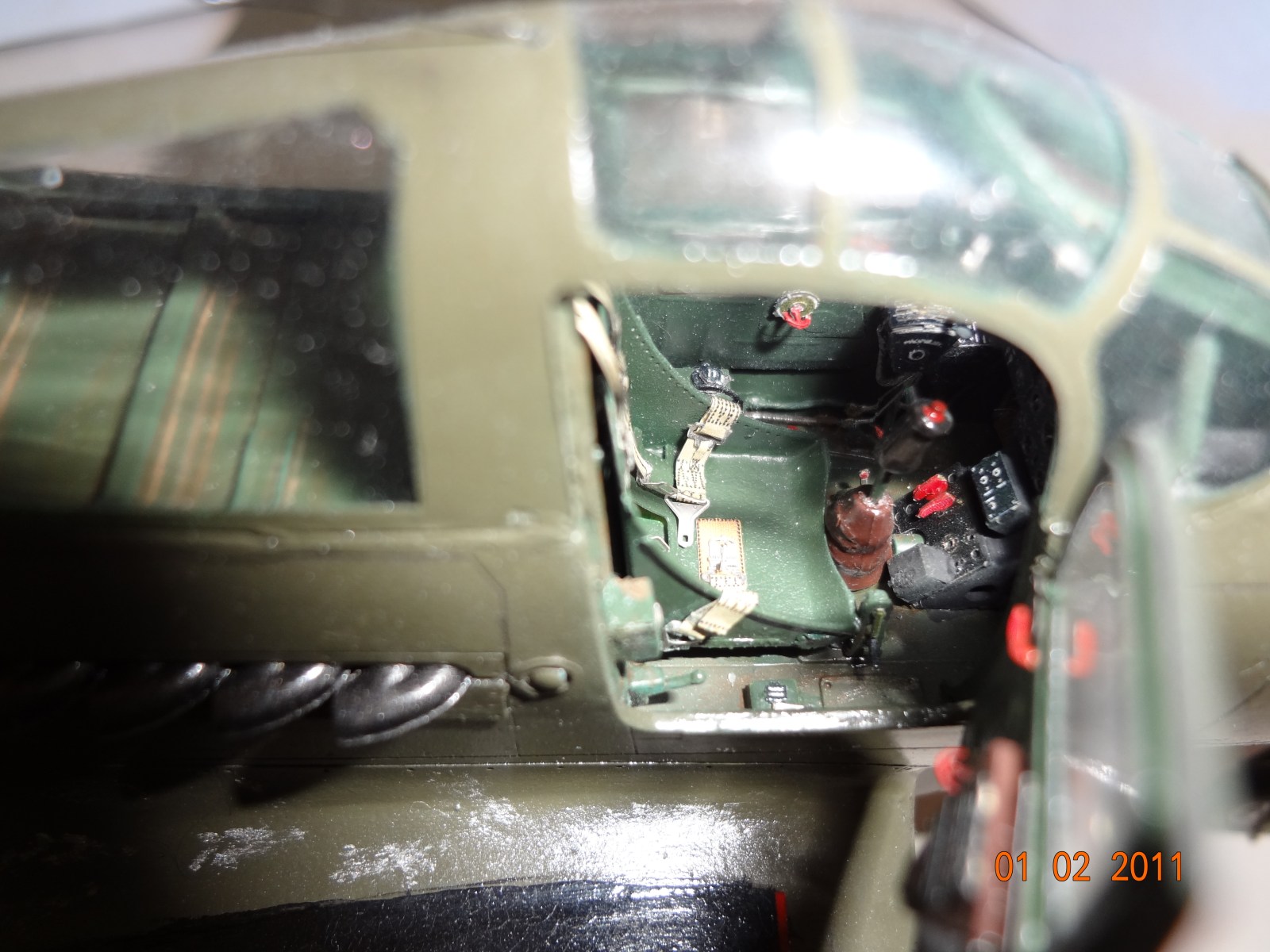 О постройке: Сказку открывать не стал, боялся, что не осилю проект. Теперь жалею; косяков было бы значительно меньше, а их навалом: неаккуратность сборки, покраски и пр. В процессе сборки один набор загубил, пришлось дозаказывать. Сначала был не уверен, что вообще смогу, в какой-то момент отступился, хотел выбросить, но потом появился азарт. Модель обильно напичкал эдуардовским травлением как из набора, так и закупленных допов. От себя добавил проводку приборной доски и в нишах стоек шасси, правда получились "суслики".