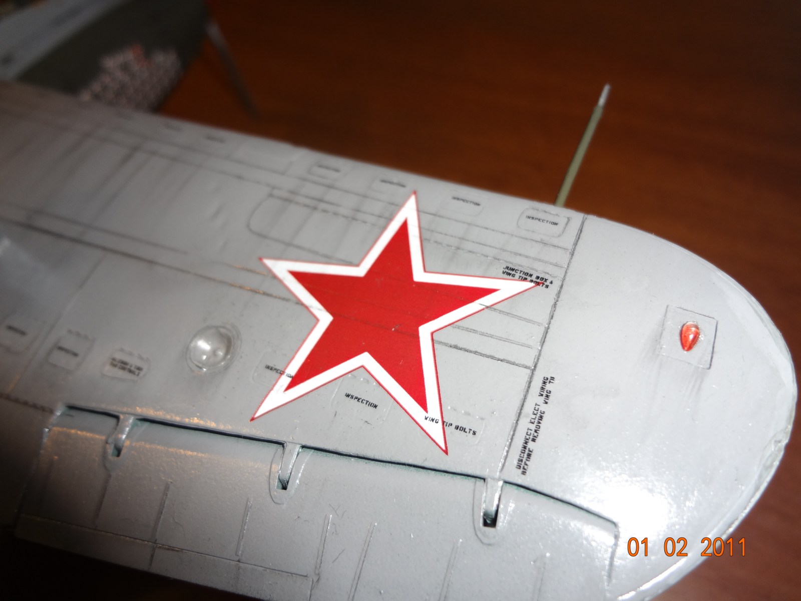 "Смывка", "прешейдинг", "везиринг" для меня понятия инопланетные. Делать это я не умею, ничего этого на модели нет. Красил из тамиевских баллончиков, поэтому попадание в цвет тоже по вопросом. После покраски покрыл футурой, нанес декали, и еще раз футурой. Декали из набора, качество замечательное. Речкаловские "фишки" заказывал на сайте у Алексея Бацких. Расшивку попытался выделить карандашом, попробовал нанести следы эксплуатации(выхлоп, грязь и т. д.). Что получилось, судить вам. Критику и замечания приму с благодарностью. Может посоветуете,подскажете, что можно доделать, исправить. Да еще допустил серьезный промах: мало добавил груза в носовую часть, поэтому модель садится на хвост, досадно.
