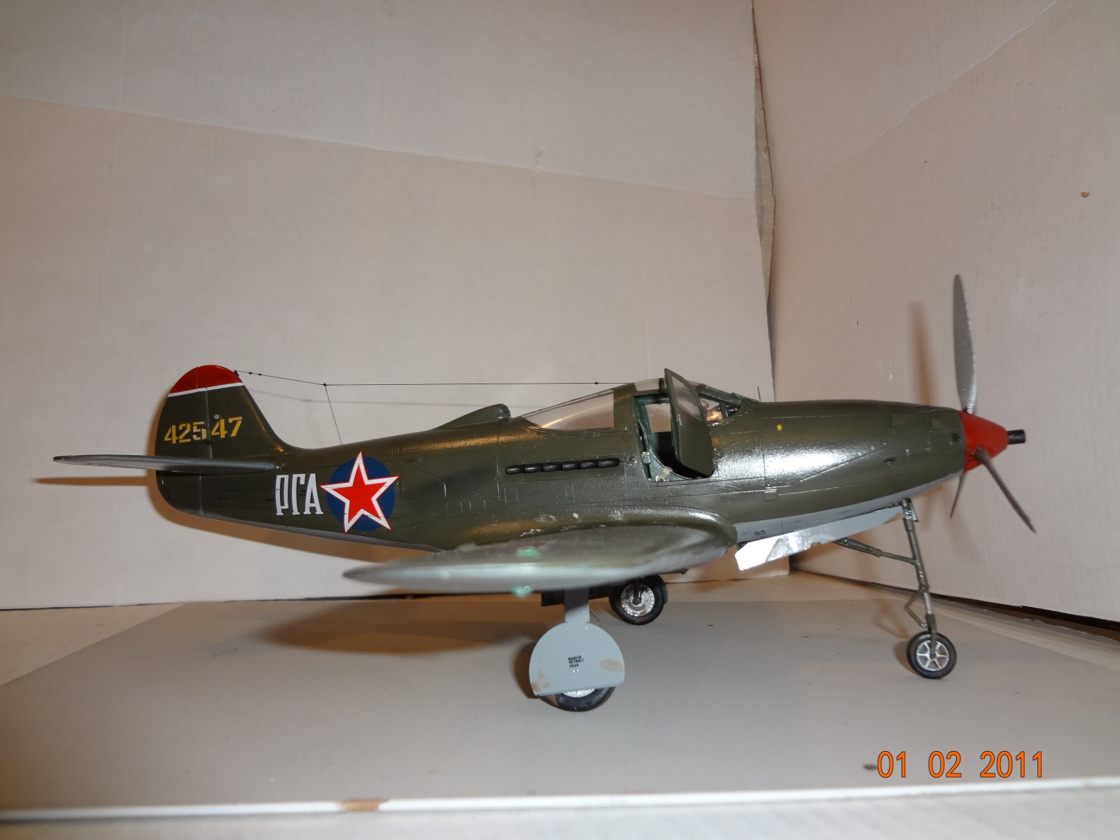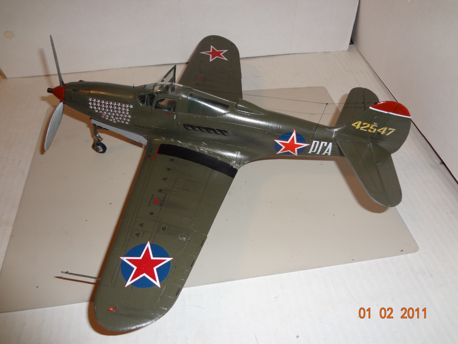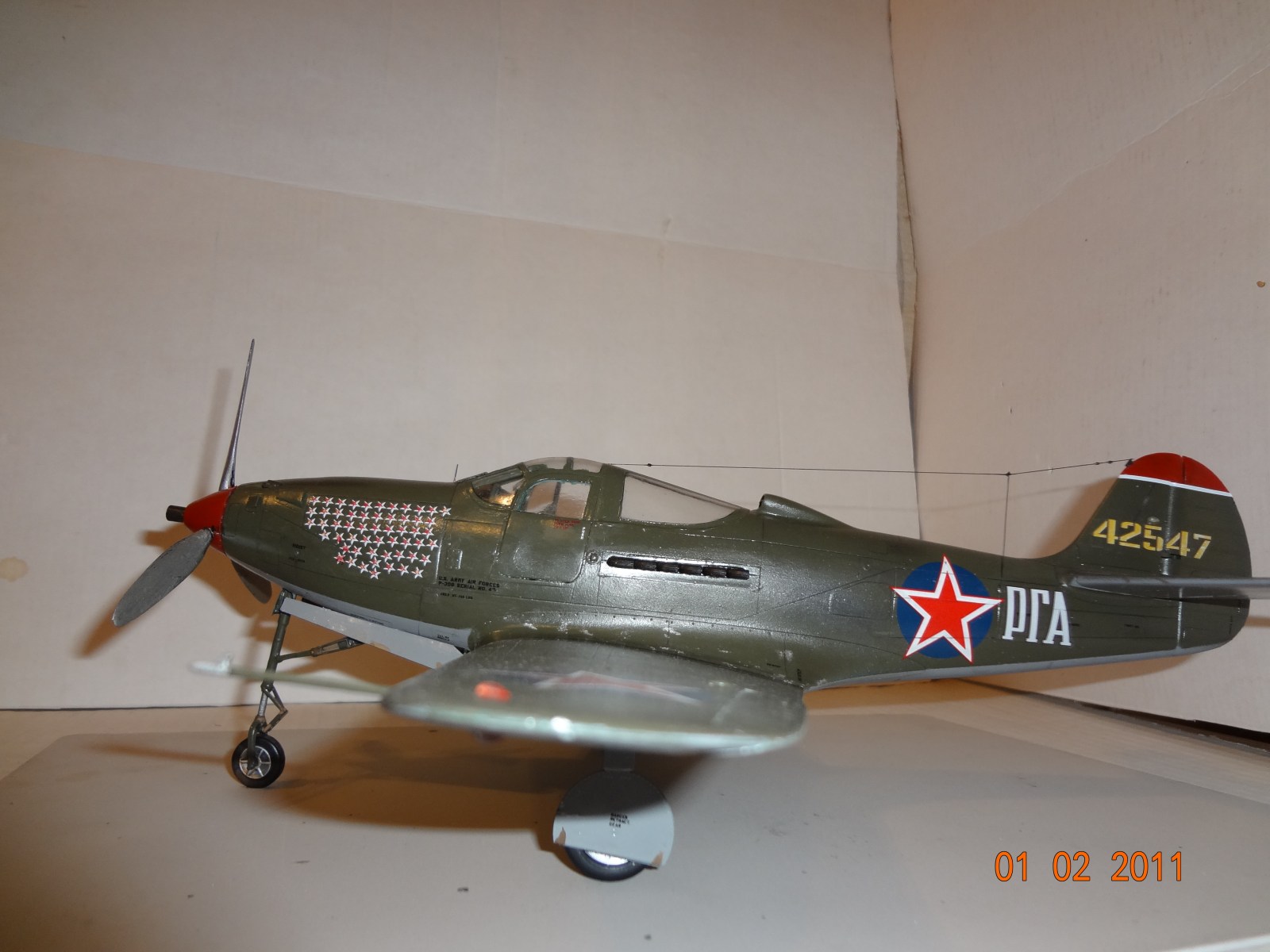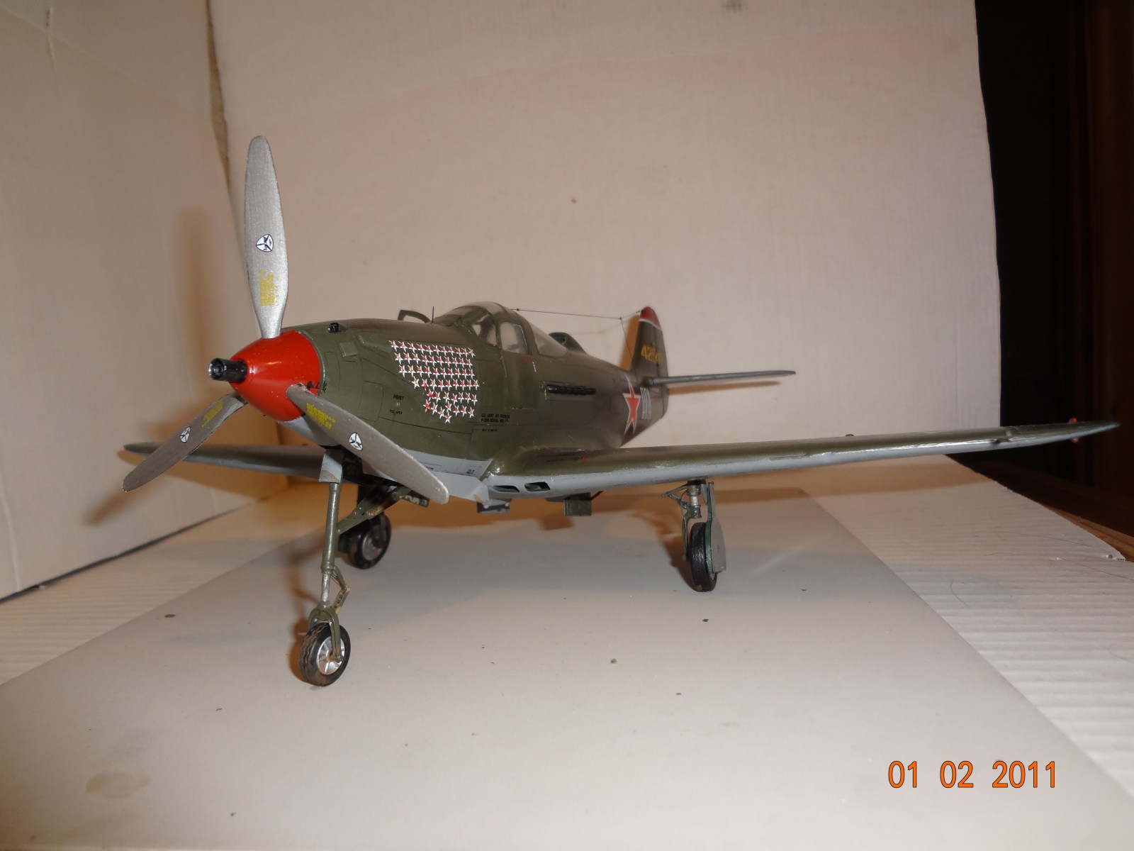 Аэрокобра еще та змея ,пендосы ее просто ссали ,поэтому незнали кому отдать .А у нас она прижалась.хотя конечно о ней старались не писать ,но шила в мешке не утоишь .А.И.Покрышкин,Г.А.Речкалов(кстати самый результативный пилот на Аэрокобре)еще был Гулаев и Глинки.харизматичный самолет .у меня тоже такой есть но 72ом тоже Речкалова