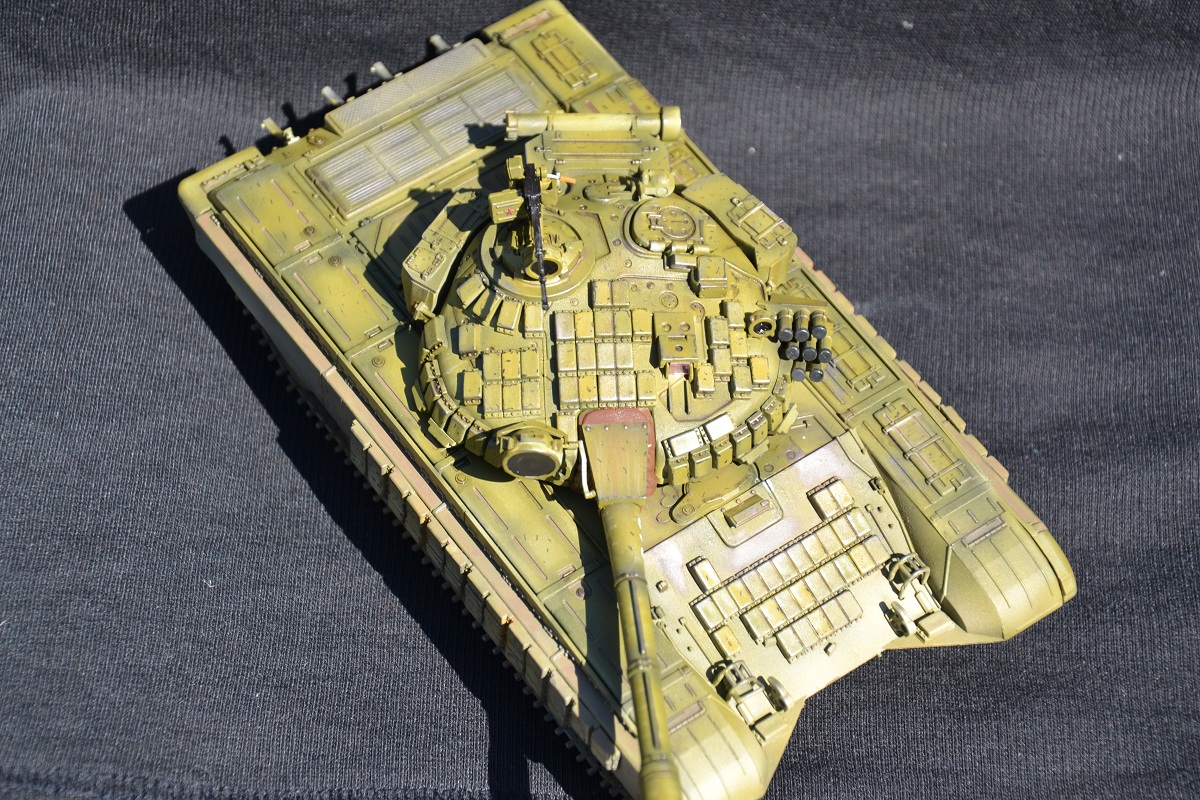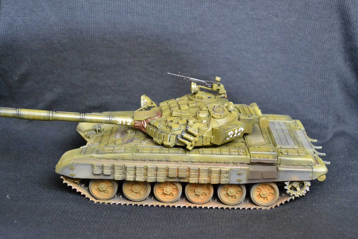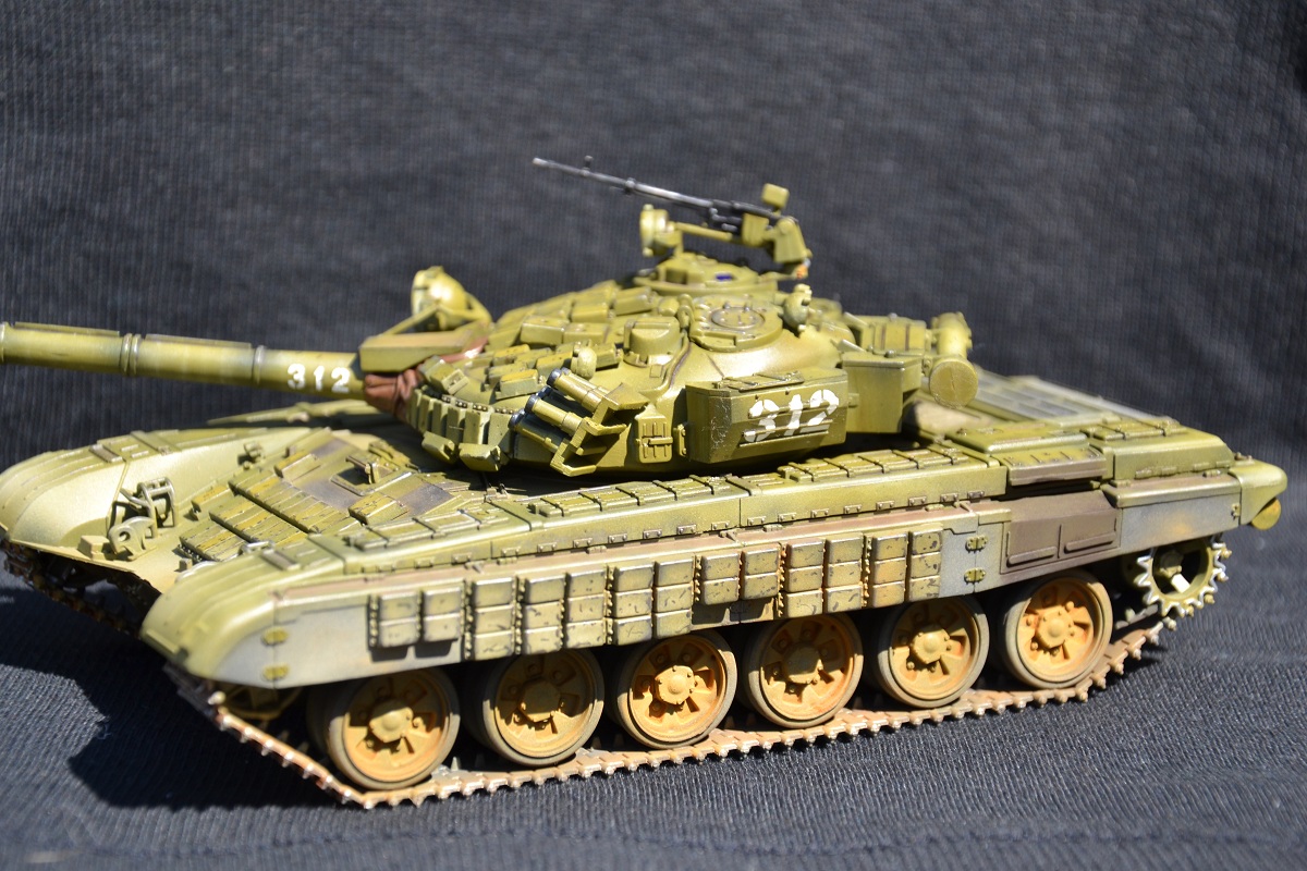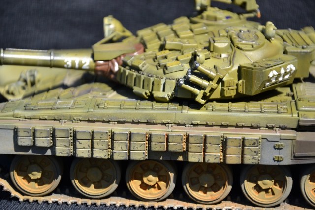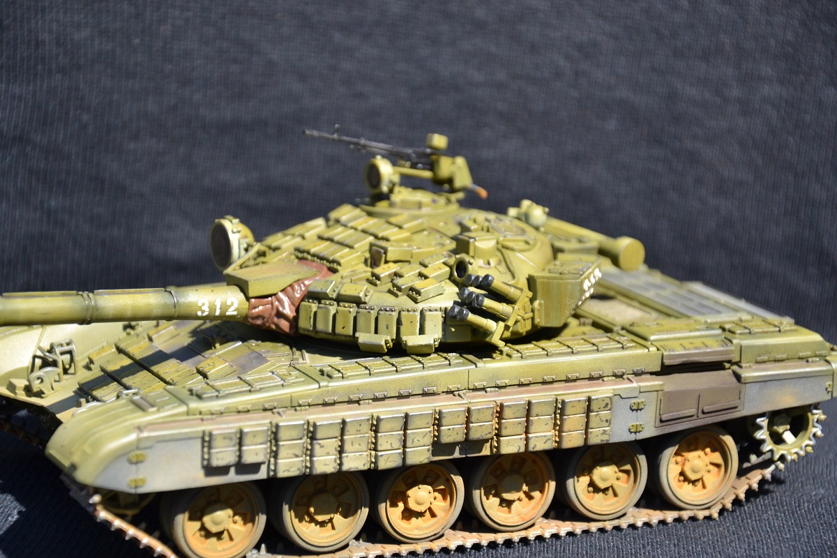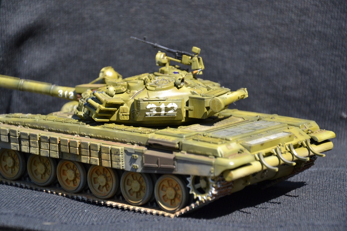 Добрый день.Сегодня решил выложить что то из современки.Очень нравится мне этот легендарный и самый массовый танк.По сборке были и проблемы,особенно гусеницы.По мат.части сразу скажу что модель похожа на прототип только издалека и в темноте))Исправлять мат.часть не стал(лень матушка)Упор делал только на покраске и везеренге.Со сколами чувствую переборщил.Красил в основном тамией,так же использовал краски мастер акрил(понравился результат).Химия миг и тамия.С разделом галлереии пока не разобрался,ну я думаю модераторы решат куда разместить мою поделку))Жду обьективной критики и советов.