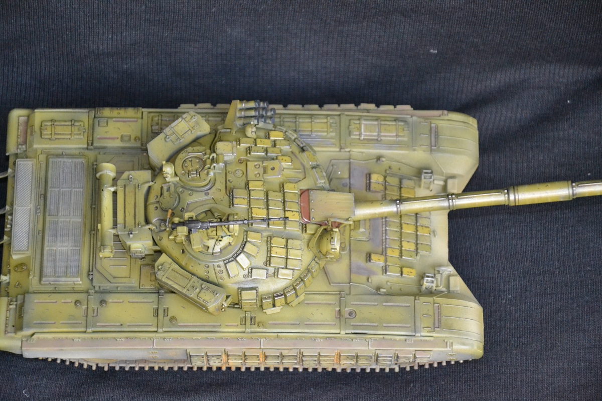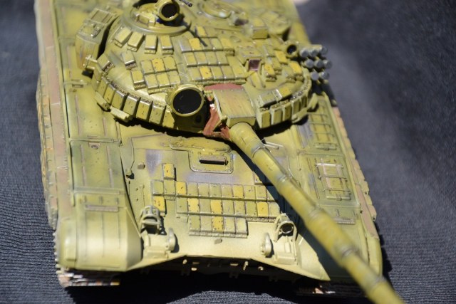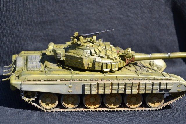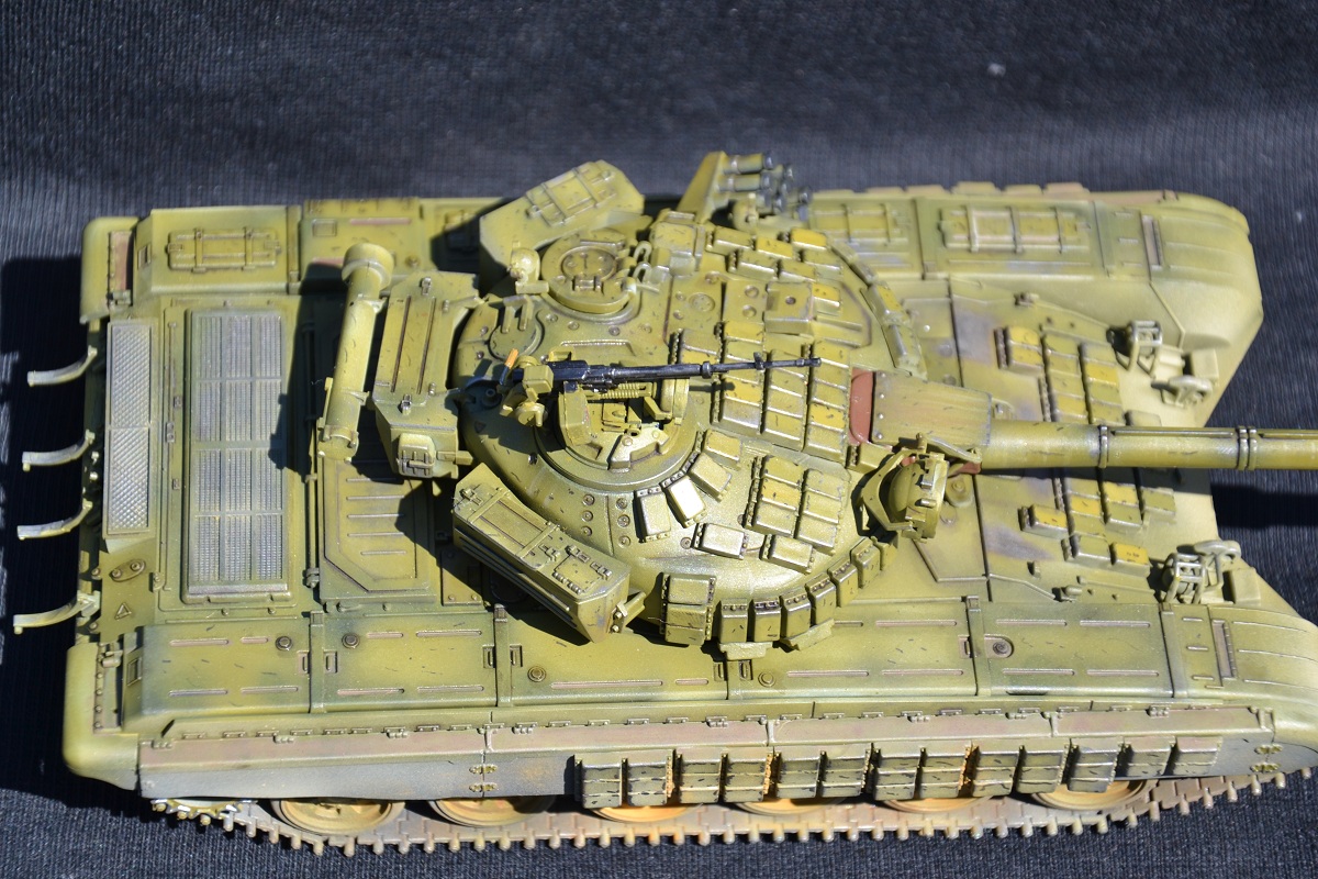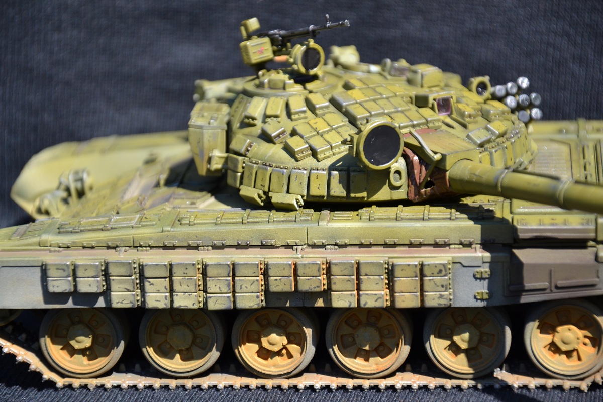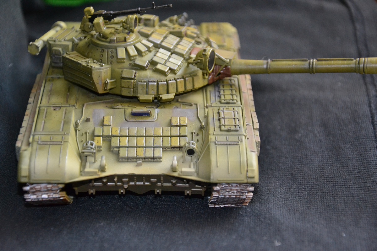 Добрый день.Сегодня решил выложить что то из современки.Очень нравится мне этот легендарный и самый массовый танк.По сборке были и проблемы,особенно гусеницы.По мат.части сразу скажу что модель похожа на прототип только издалека и в темноте))Исправлять мат.часть не стал(лень матушка)Упор делал только на покраске и везеренге.Со сколами чувствую переборщил.Красил в основном тамией,так же использовал краски мастер акрил(понравился результат).Химия миг и тамия.С разделом галлереии пока не разобрался,ну я думаю модераторы решат куда разместить мою поделку))Жду обьективной критики и советов.