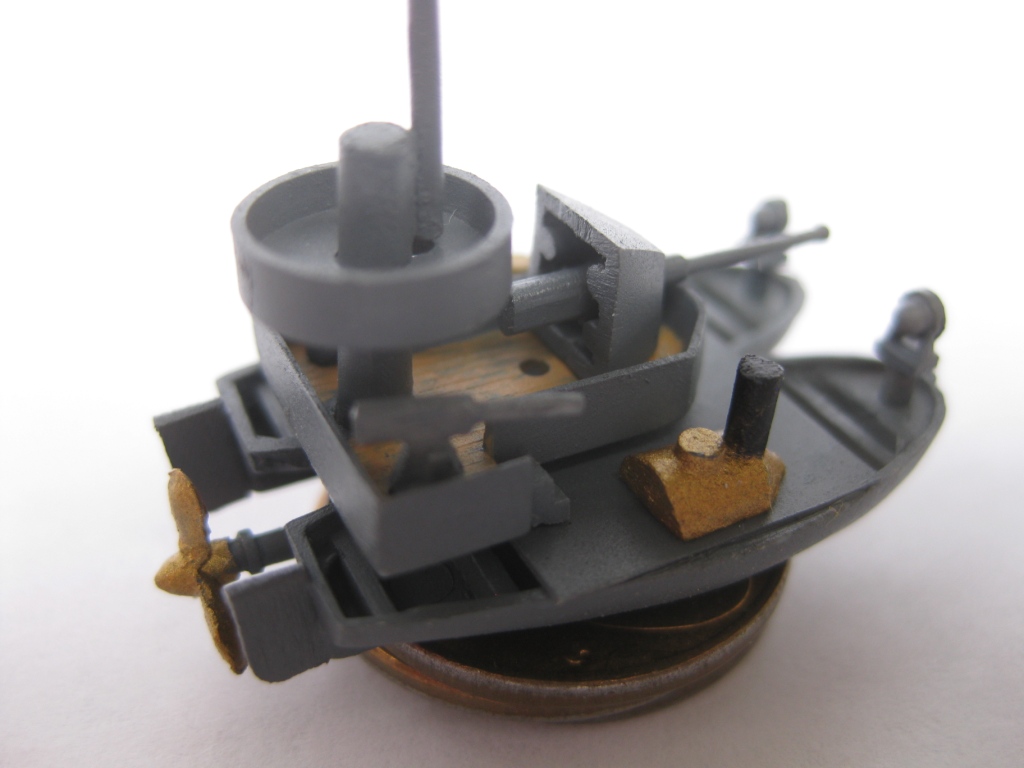 От набора "Аврора" тут прожекторы, верхний мостик, трапы,винт.