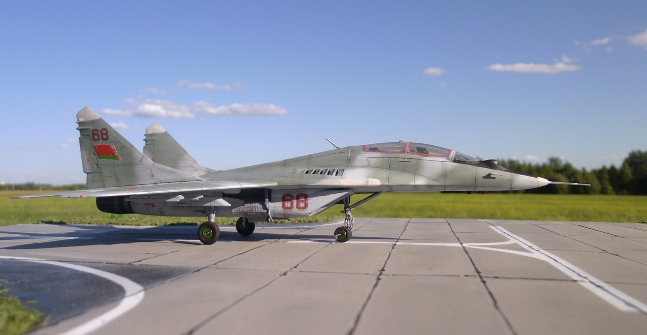 Доброго дня моделистам! Ставлю на ваш суд "брата"своего МиГ-29 с Б/Н 61. Модель всем известна и в описании как мне кажется особо не нуждается. Из доработок,тут тоже без особых "изысков". Сменил крой на килях и по планеру.Добавил фары от Эльф.Чуток гидравлики по стойкам.Ниши трогать не стал. Дэки,самопальные.Все лакокраски,автомобильные. Ну вот вроде и все. Всем доброго дня!Спасибо,что заглянули!