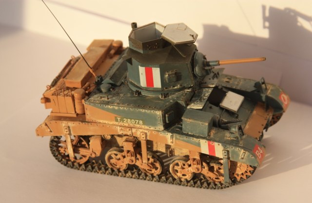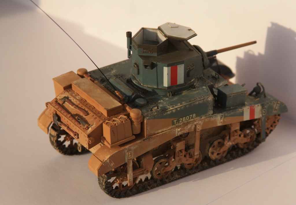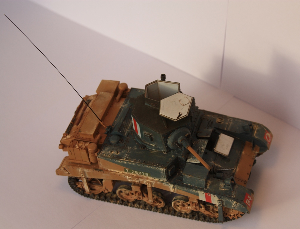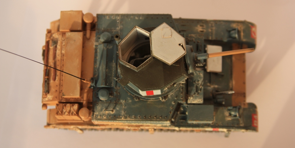 Моя первая модель на сайте. Сборка из коробки, из дополнений только антенна из тянутого литника. При сборке особых трудностей не наблюдалось, стыкуемость хорошая. Со сборными лентами париться не стал, одел винил. Использовал окрасочную схему из инструкции, конкретной привязки модель не имеет. Грунт Tamiya, краски акрил Tamiya и немного Valejo. Тонировка фильтрами и смывками Mig, пигменты той же фирмы.