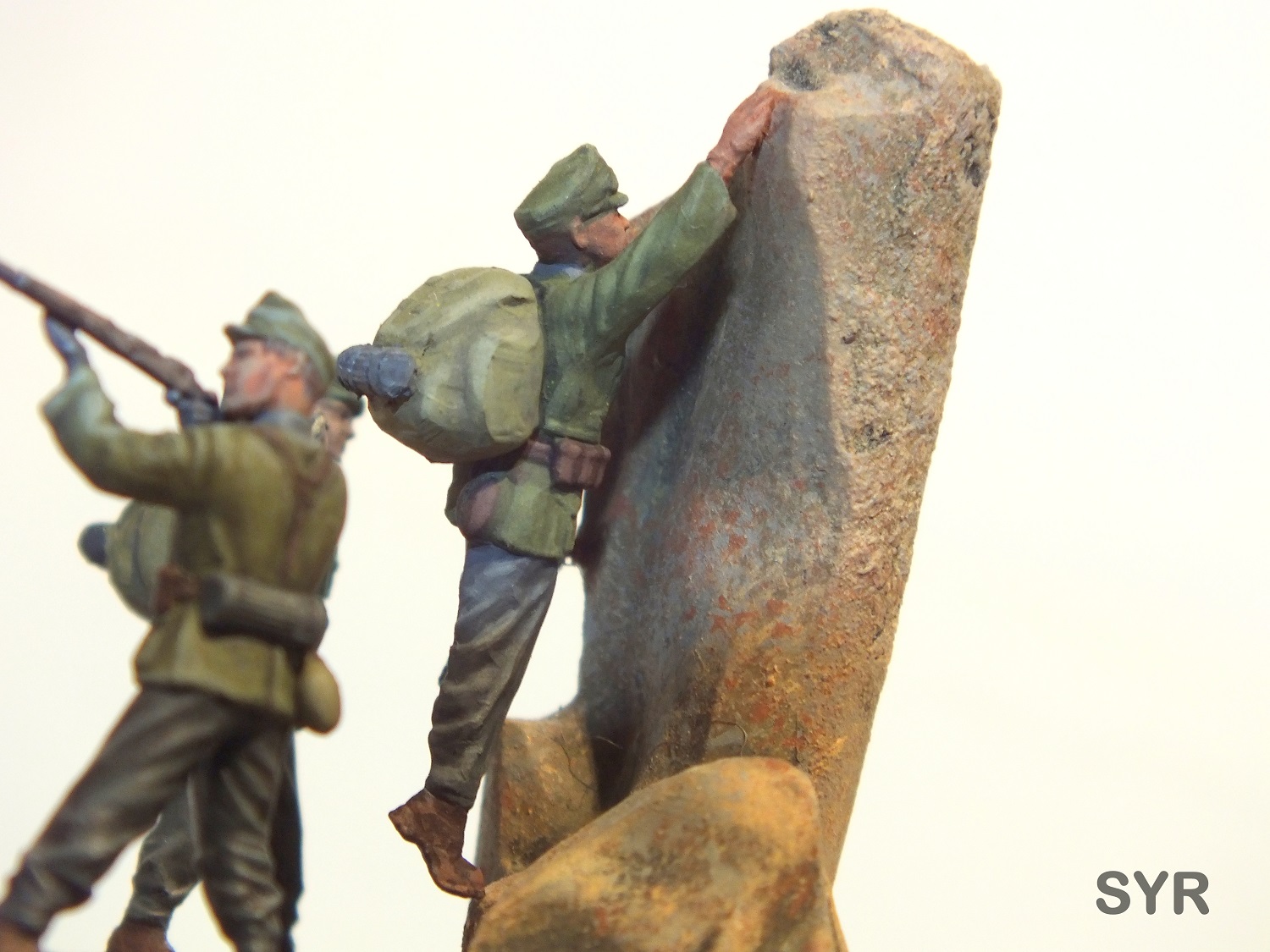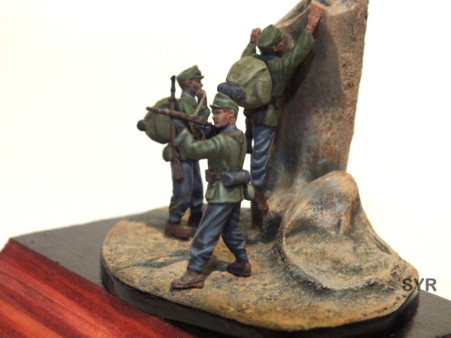 Больше всего понравились клапан рюкзака на бойце с веревкой, и левая рука, левое плечо и левый подол мундира со спины на бойце с поднятой винтовкой. Остальное не столь хорошо, и если бы в этом духе было выдержано все остальное, было бы куда лучше.