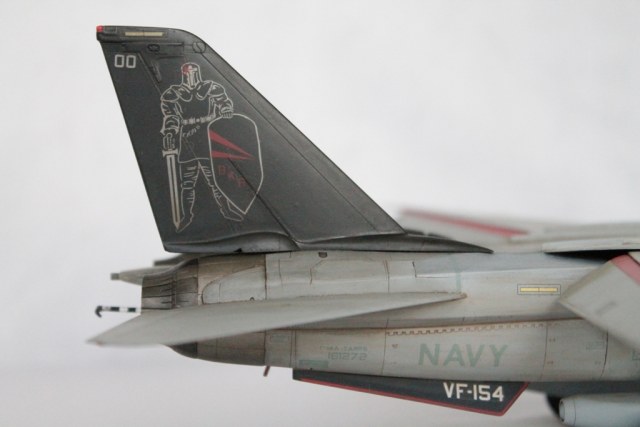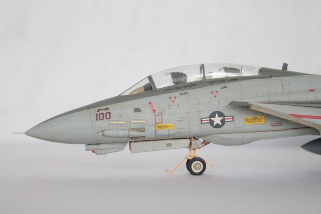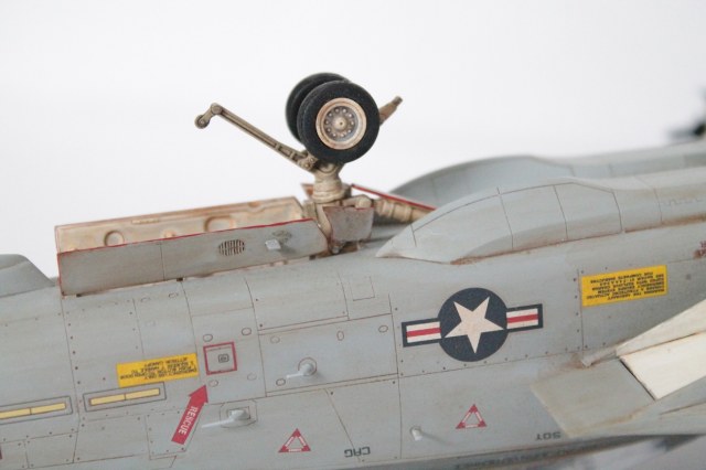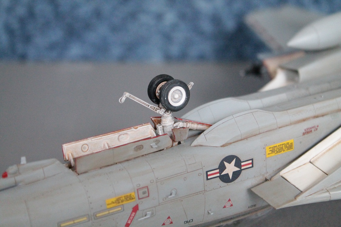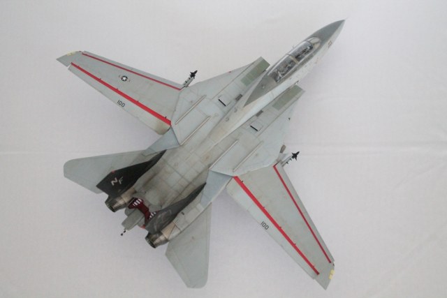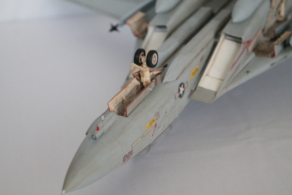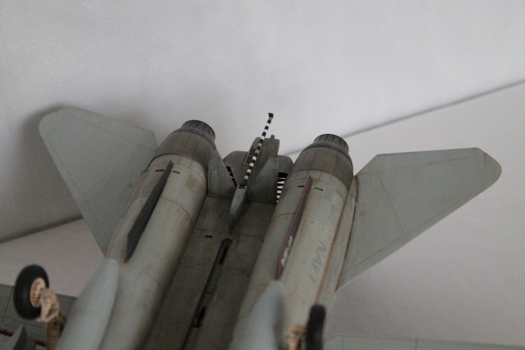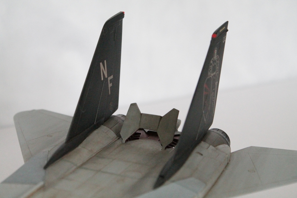 Дмитрий здравствуйте.Если позволите то немного покритикую Вашу работу.По цвету смывки согласен с Игорем - цвет странный, особенно странно он выглядит на белых стойках и дисках шасси.На фото килей бросаются в глаза места их стыка с фюзеляжем."Лобовуху" хорошо-бы было слегка подтонировать зеленым. При "складывании-раскладывании" на крыле остаются дугообразные следы...их имитация на модели так-же улучшила-бы внешний вид(прилагаю фото). Сайдвиндеры и пилоны подкрыльевые в местах где нет подвесок смотрятся очень простенько. Недоработали модель, поспешили.