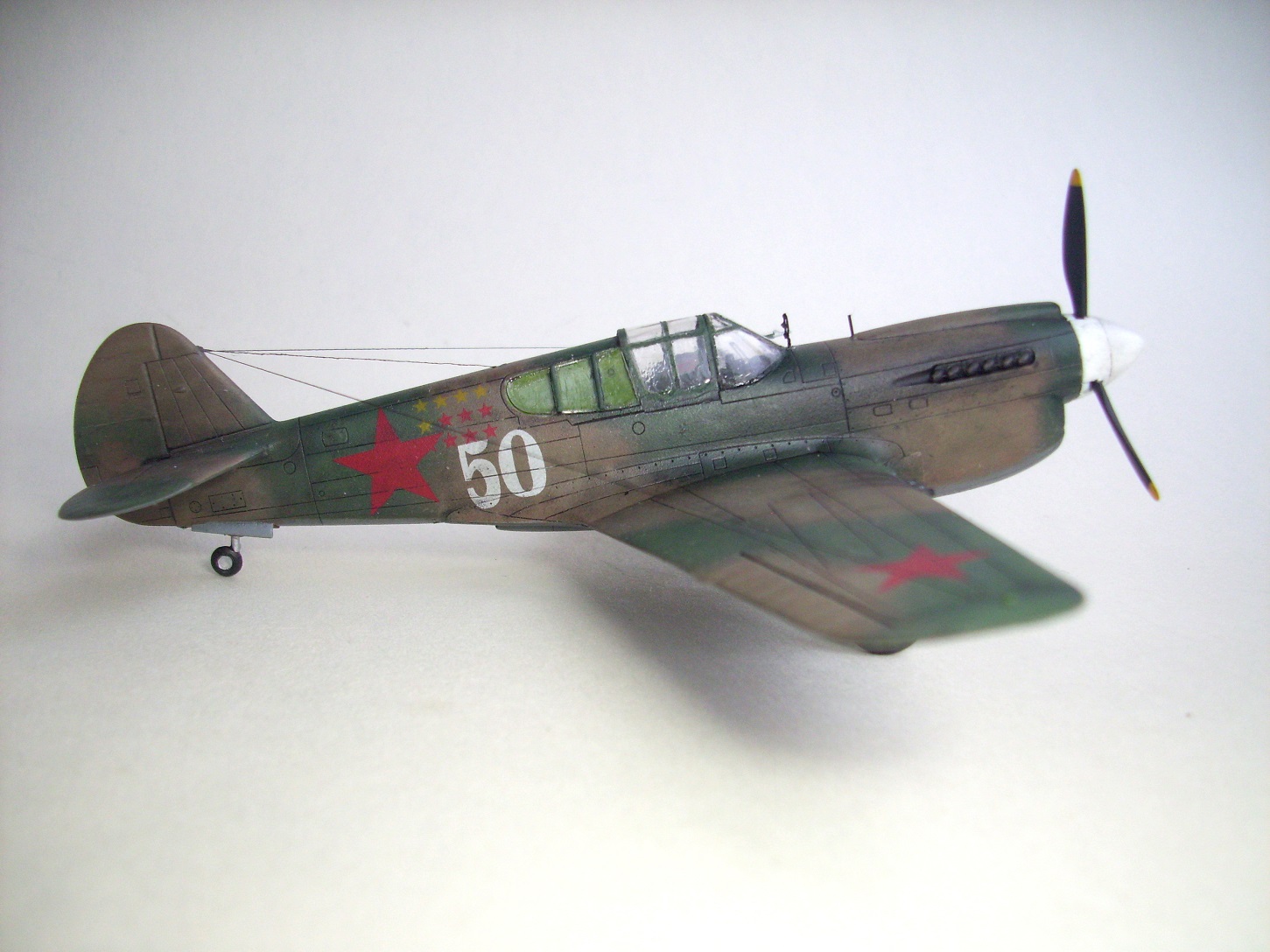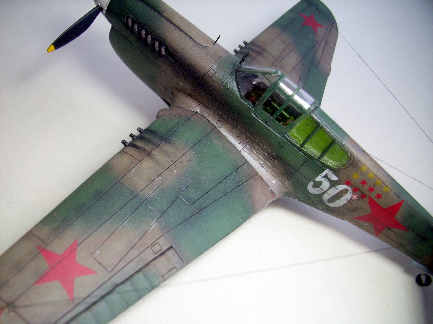 Вполне хорошо, и фонарь совсем не мутный. Единственно, хочу сказать, что границы цветов очень размыты, это не соответствует выбранному прототипу. На оригинальных самолетах, такое впечатление, что камо наносили при помощи трафаретов или малярного скотча, настолько четкая граница. Наверно также надо было им воспользоваться.