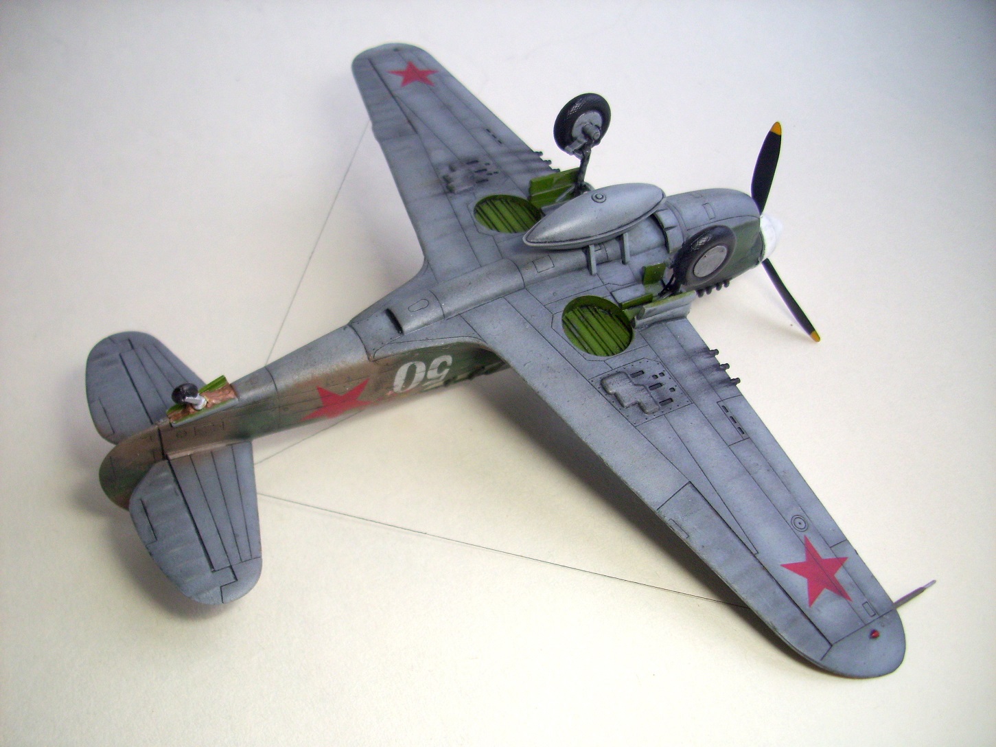 Заметно "бронетанковое " влияние. Я понимаю - грязное "брюхо"- все утечки при замене , доливке технических жидкостей, фюзеляж за выхлопными патрубками. Но консоли крыла вне зоны пулемётов - швы на прототипе керосином проливали ? От клопов ? Если не ошибаюсь - даже гидросистемы уборки шасси на этой машине не было - была электрическая система . Понятно - это эффектно выглядит. Так же как и размытые границы камуфляжа. Но грязный , облезлый самолёт - скорее исключение чем правило. В отличие от моды на "каропке".