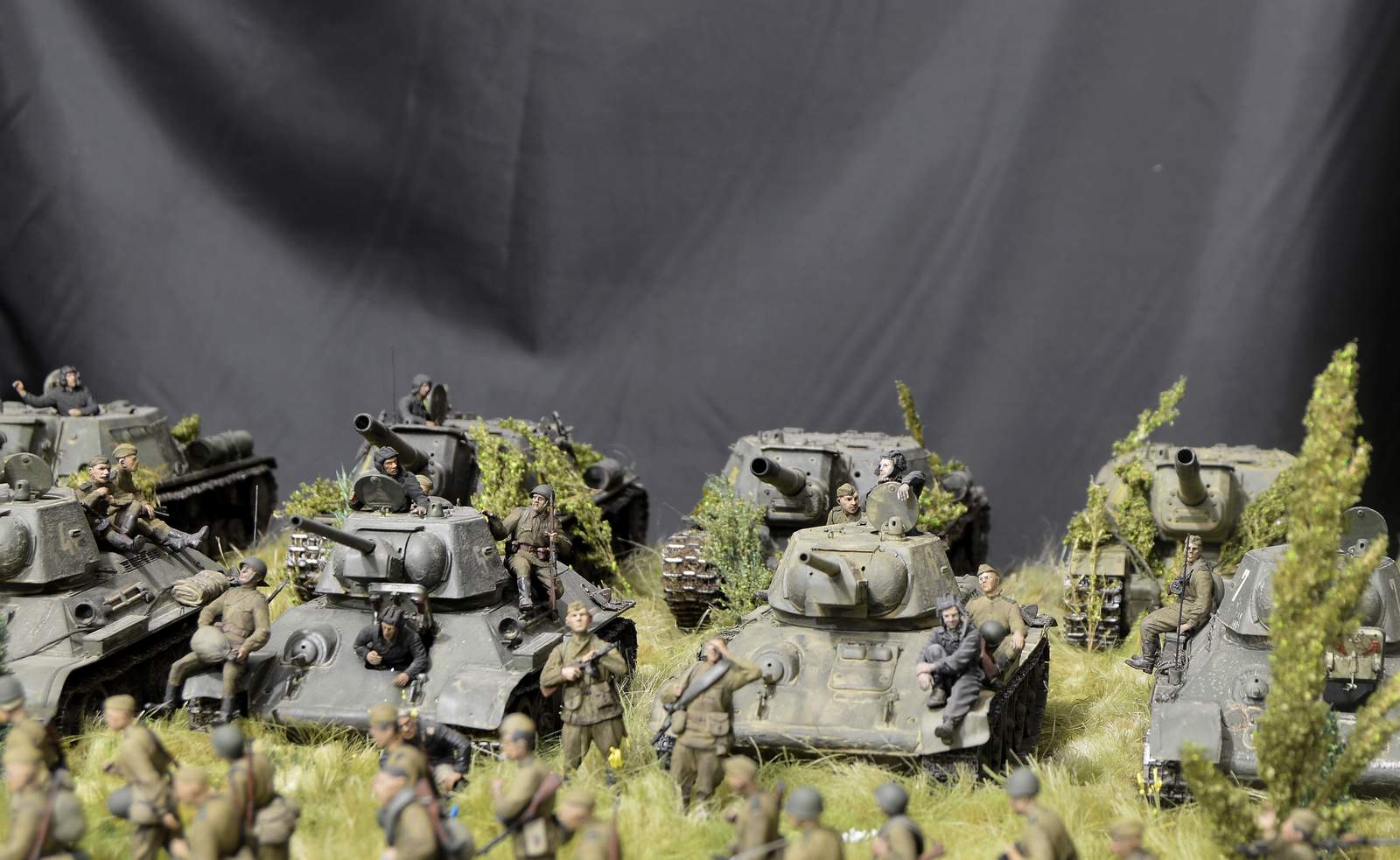 1. Сгрудить в одну кучу множество однотипных элементов, и суметь придать каждому индивидуальность - это уже НЕЧТО!. Но почему на ВСЕХ Т-34 (кроме одного)разбитые фары?