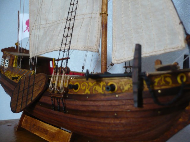 Гена привет! Симпатичная яхта получилась. Огрехи выискивать не буду, т.к. в дереве не силён. А из придеризмов упрощённая (слишком) обвязка пушек. Но с моей стороны кидаю белый шар. Поздравляю с дебютом, и удачи в дальнейшем!