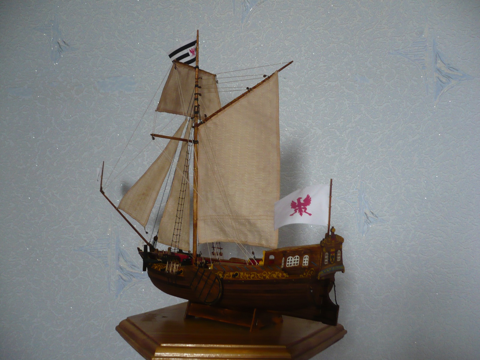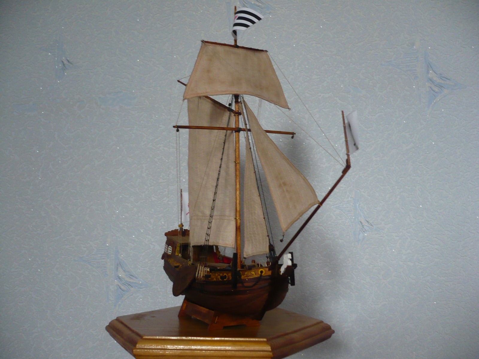 Вот и закончилась стройка этой модели. Это первая моя модель из дерева, так сказать дебютная. Строилась модель из коробки с небольшими доработками. Очень понравилось работать с деревом. Из недостатков которые у меня вылезли: ворс канатов, такелаж упрощённый, канаты не той толщины которая должна быть. Выражаю благодарность aleksandr rav за предоставленную модель.