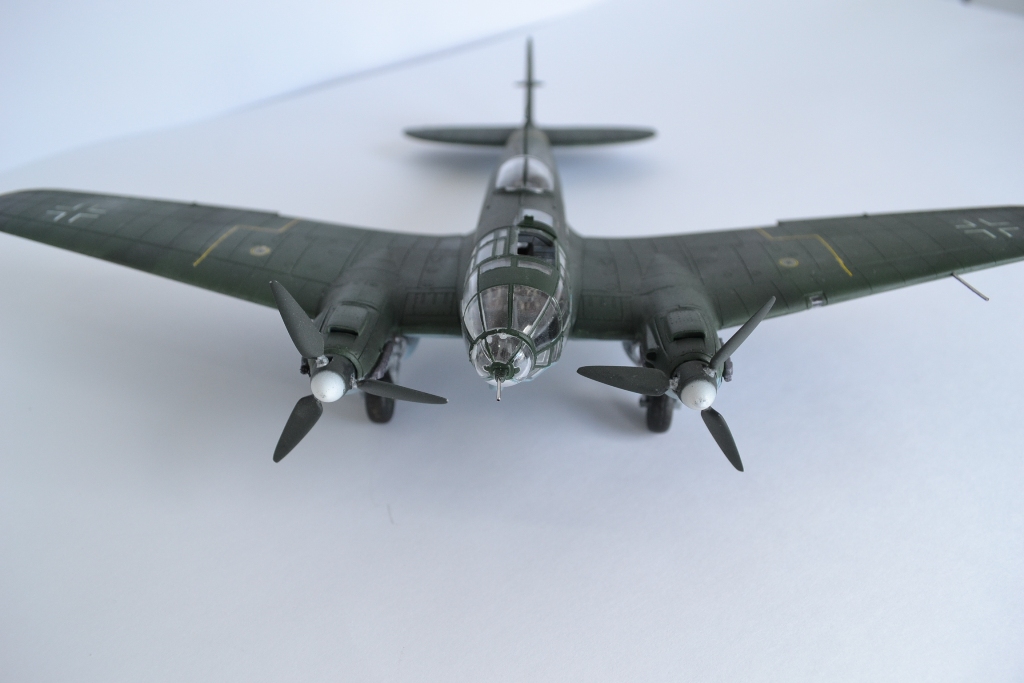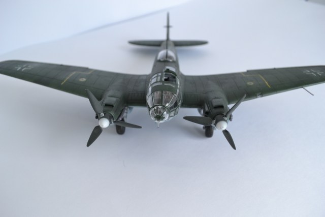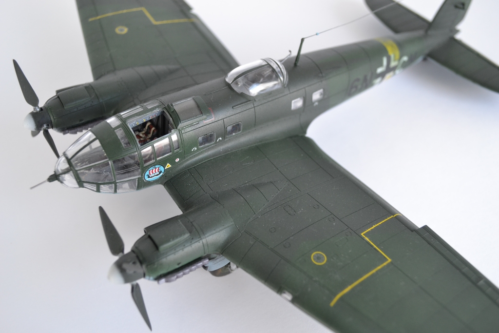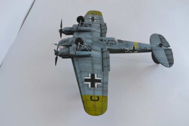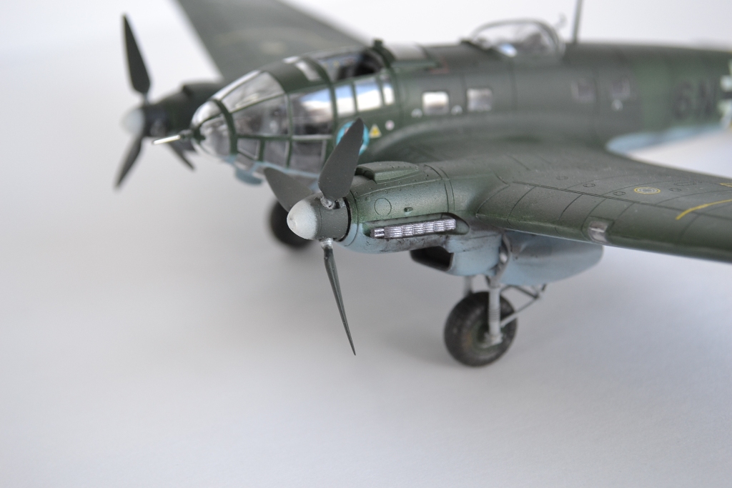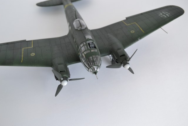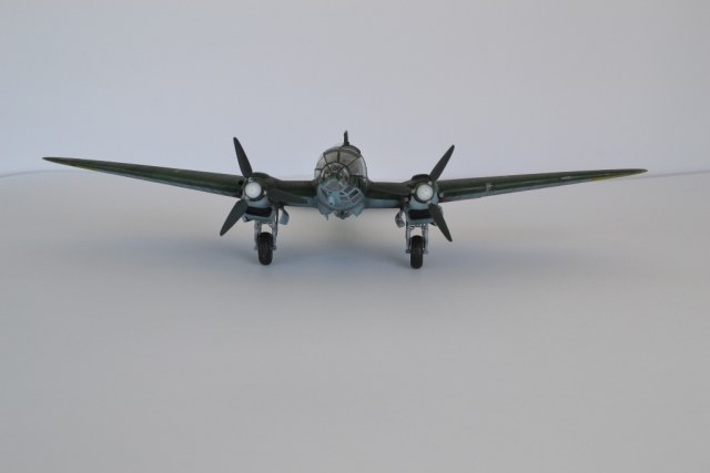 понравилась модель! правда, есть несколько замечаний... патрубки выхлопные нереально чистые, т.е. без намека на ржу и выгорание металла, границ RLM70 и 71 практически не различить, цвета сливаются и кажется, что он одного цвета... ну, и с пачканьем низа, ИМХО, перебор... да, куда свастика с киля делась?