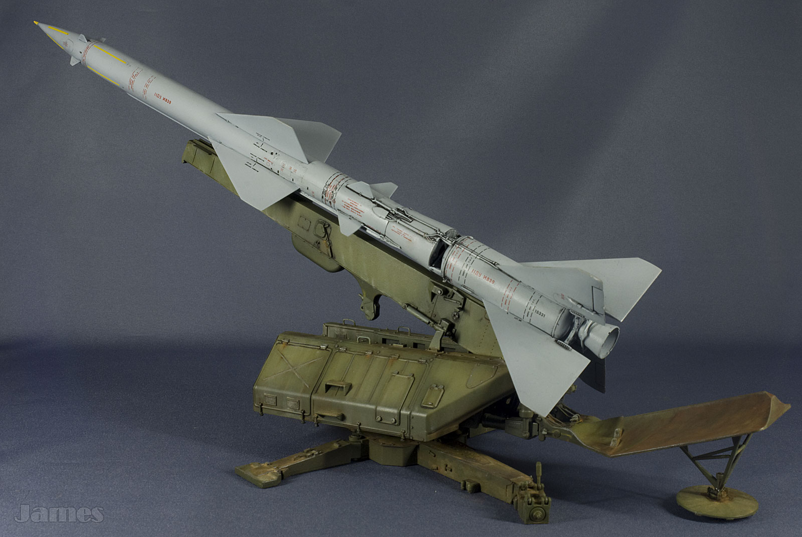 В 35-м масштабе модель выглядит очень внушительно, ракета комплекса около 30 см в длину, понравилась детализация. В особенности, мне понравилось, как выполнена детализация изделия. Окрашена модель красками Mr.Hobby, тонирована пигментами и химией Mig, AK interactive и художественным маслом. Окраска была выбрана для советской армии, старение было призвано показать комплекс во время боевой эксплуатации. Поэтому газоотражатель показан обгоревшим.