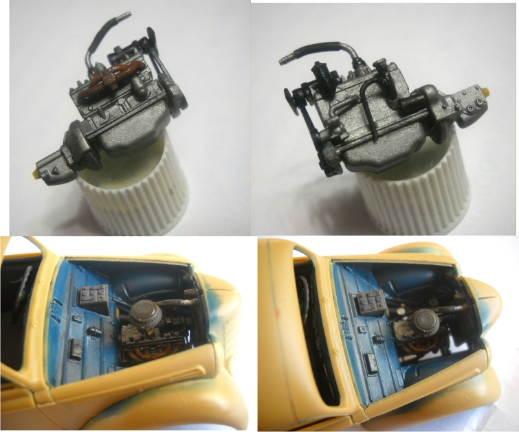 Двигатель и подкапотные потроха красил и тонировал,чтобы получить и закрепить бесценный опыт в моделизме...оттого там и нет проводки....