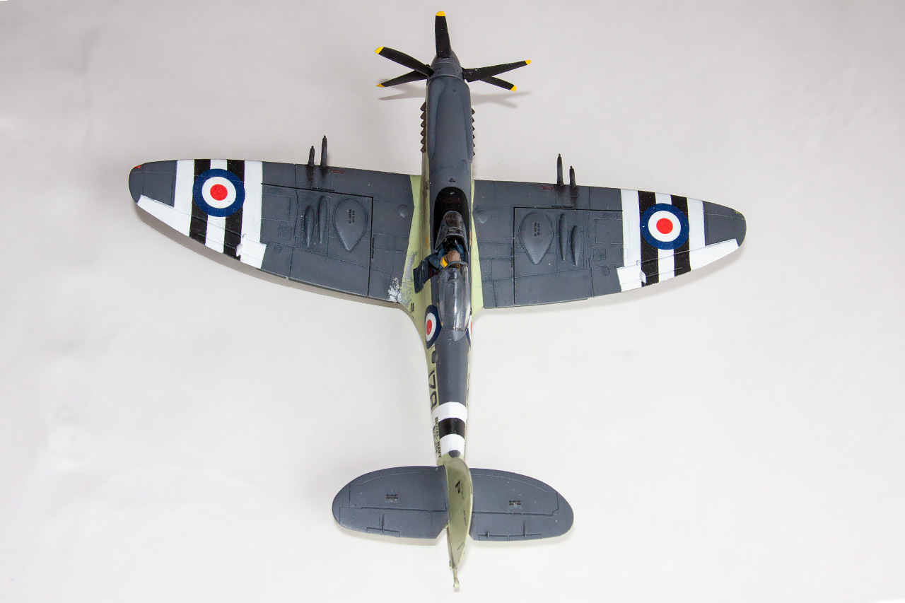 Внутреннее убранство кабины дано производителем "по мотивам", за исключением приборной панели. Но даже она не спасает, поэтому посадил в кабину летчика который перекрыл весь объем. По той же причине не стал делать сложенные крылья - механизмы складывания очень условны. Более того, без доделок в сложенное положение крыло не установить. Хотя и в развернутом положении крылья очень плохо стыкуются. ОЧК оказались тоньше чем корневые части почти на 1 мм.