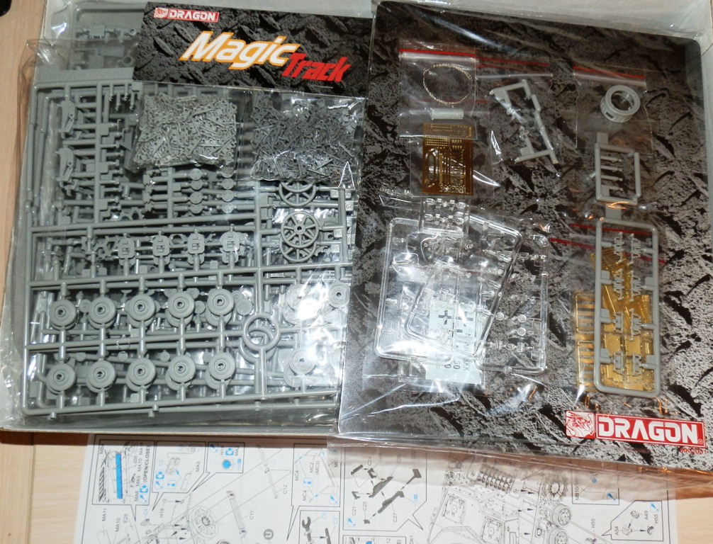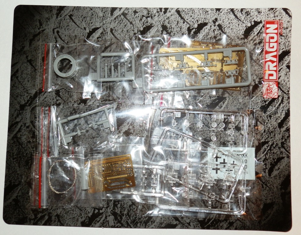 Приветствую, Уважаемые Коллеги и сочувствующие! Позвольте представить обзор модели немецкой четверки модификации "D" с длинным 75мм стволом от Дрегона. Набор заключен в крупную дрегоновскую картонную коробку весьма чувствительной массы. Коробка буквально забита литниками, Дрегон всегда "грешит" множеством литников, но здесь их реально очень много! В общем в наборе 26 литников и литничков с деталями танка и запчастями (как минимум 40% не используются), три прозрачных литника с оптикой и приборами наблюдения. Отдельными деталями дается башня танка, ванна корпуса, ком.башенка и основание ствола орудия. Кроме того набор включает в себя три платы травления, плетеный металлический трос и магик траки, ну и скромную декаль. Инструкция предлагает три варианта окраски-маркировки танка.