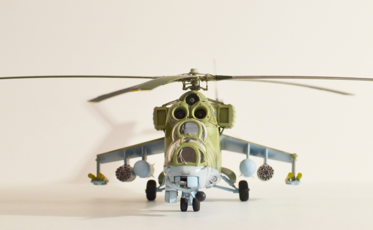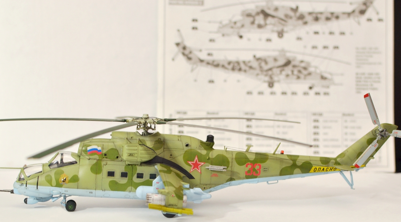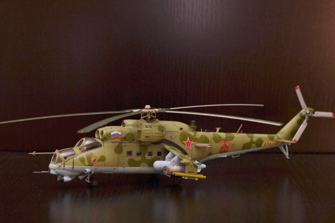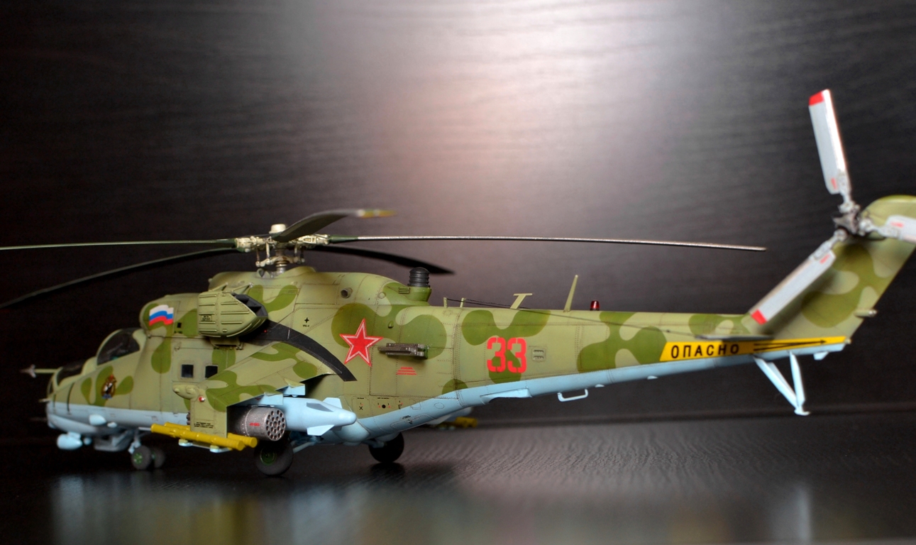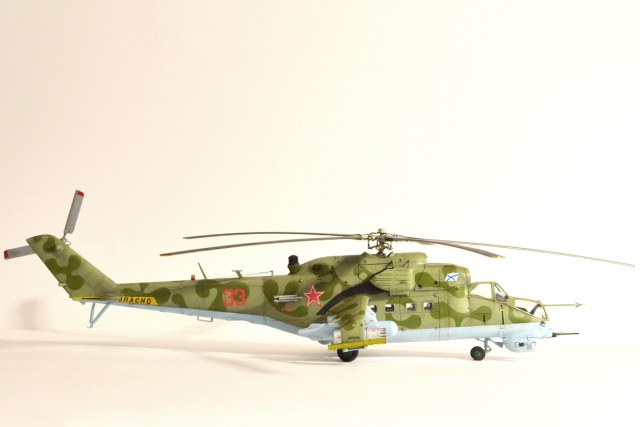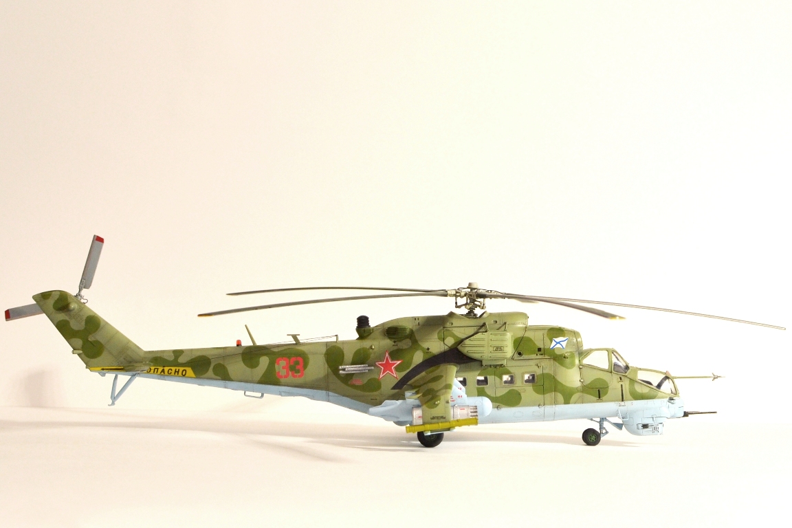 Работа понравилась. Приятно смотреть. Из технических придиризмов - нет ПЗУ. Их могло не быть на Д и ранних выпусках В, потом дорабатывали и ставили. На ВП должны быть в обязательном порядке. ЭВУ могло и не быть - в мирное время они даром не нужны, только мощность на них теряется и обслуживание усложняют. "Капля" на отсеке вспомогательной силовой установки на ВП не может быть выполнена с жалюзями, только сплошная. Жалюзи были на Д и ранних выпусках В. Но это косяк Звезды - в наборе Ми-35 эта капля сплошная, а в наборе Ми-24В (ВП) они оставили ранний вариант с жалюзями, хотя на ВП такая форма "капли" исключена. Это не в укор автору, я понимаю - сделал то, что было в наборе, но в будущем для достоверности рекомендовал бы учитывать. Повторюсь - модель понравилась, пять баллов.