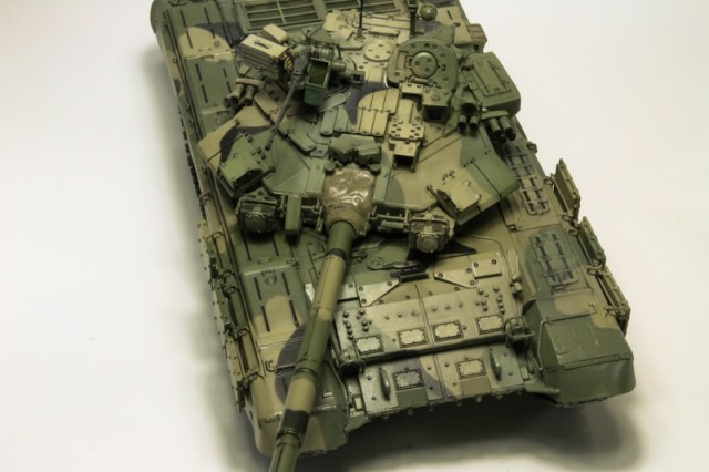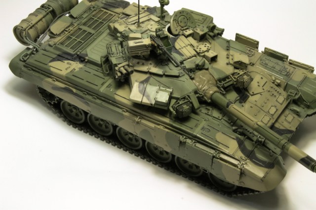 Кирилл, я, когда свой Т-90 красил все скотчем маскировал. Главное, что у многих 90-х, мной виденных мягкий камуфляж. А он должен быть резким, трафаретным. Его и в жизни так наносят. Иначе как обяснить, что на многих танках пятна в одних и тех же местах.