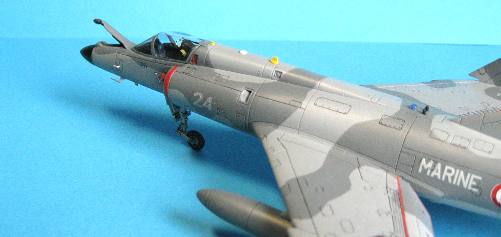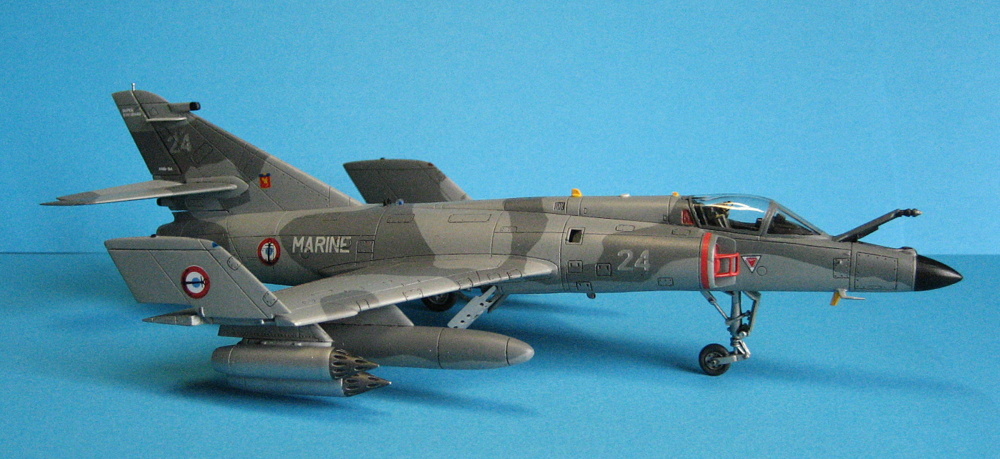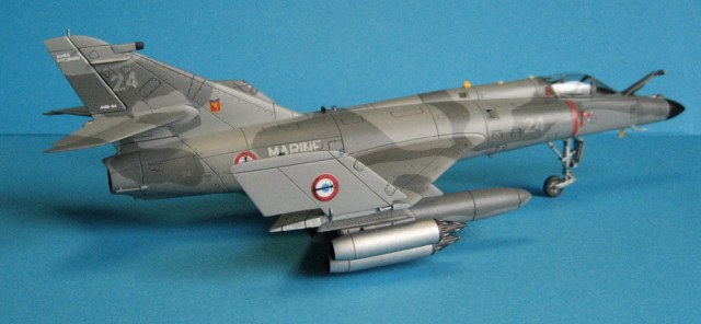 Хочу предложить к просмотру не самую популярную среди коллекционеров модель- это Super Etendard, что в переводе означает "Штандарт" , боевое знамя. Признаюсь автор , так же не испытывал теплых чувств к данному Л.А. Какой то он не выразительный, не вызывающий эмоций самолет. Летает , да и ладно. Собственно и сама модель досталась случайно. Во времена клуба , при обмене с коллегой получил её в качестве эквивалента доплаты. Собиралась , наверное лет 15 назад, делался аргентинский вариант( сероголубой верх, белый низ) .По окончании - критически оценив работу,и вынесения вердикта -фигня , поставил кит в темный шкаф, где она и простояла все эти годы