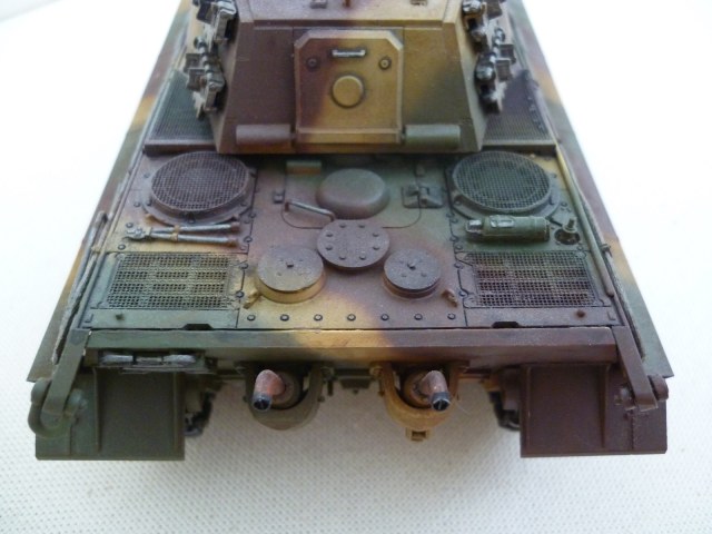Работа выполнена достаточно аккуратно(есть моменты,где необработанность от литьевых швов-присутствует-в частности-огнетушитель).На фото танк выглядит свежепокрашеным-особенно катки-думаю это НЕ добавляет "жизни".
