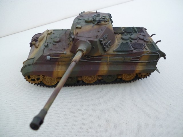 Представляю Вашему вниманию модель "Королевского Тигра". Со сборкой проблем не было абсолютно никаких. Все детали идеально стыкуются. Модель полностью "коробочная", включая травление, которое шло в комплекте и было применено мною в первый раз. При покраске были использованы Тамиевские грунт, акрил, лак и смывка.