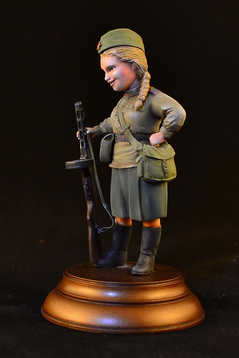 Фигурка советской автоматчицы из известного шаржевого набора японской фирмы FineMolds. Не смог пройти мимо в магазине. Купил еще и двух немецких пулеметчиков, чуть позже выложу.
