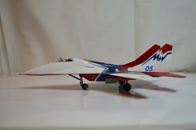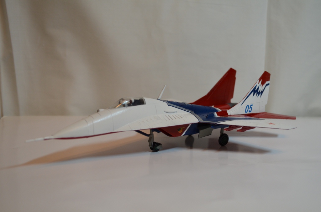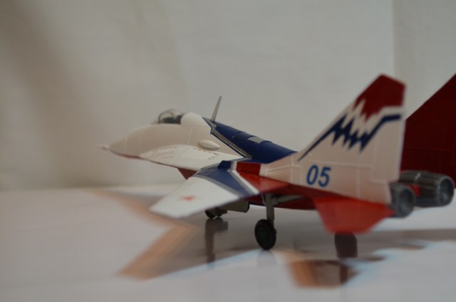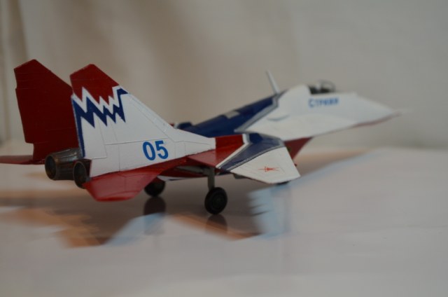 Андрей, для модели выбор исходника был не удачнчым, для подарка сыну - вполне. Хотя и искаженно, но передает облик Миг-29.
