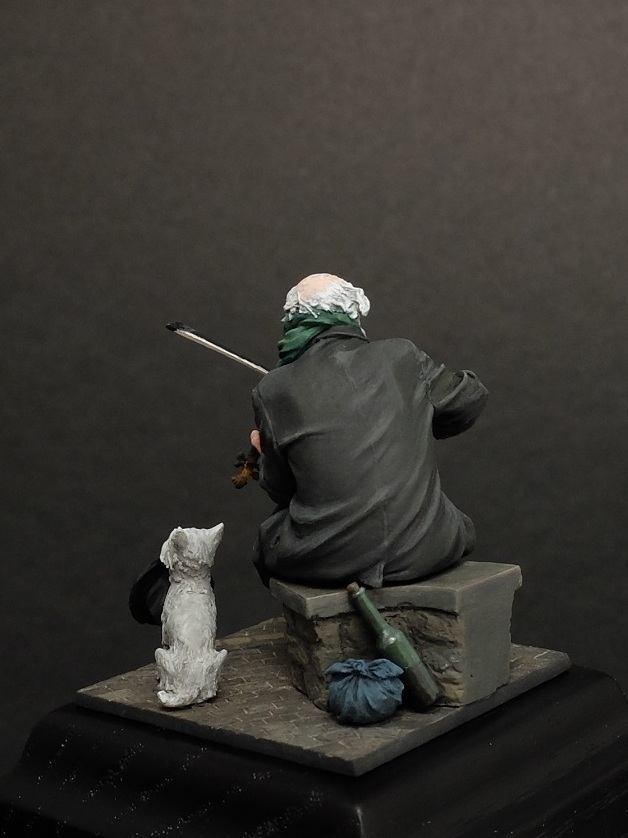 Обалденно!!!! Не мое дело советовать автору, но миниатюра будет еще больше вызывать щемячие чувства, если сзади на пальто изобразить (декалью например), на уровне сердца нашивку - желтую давидову звезду. Будет старый еврейский дедушка из гетто.
