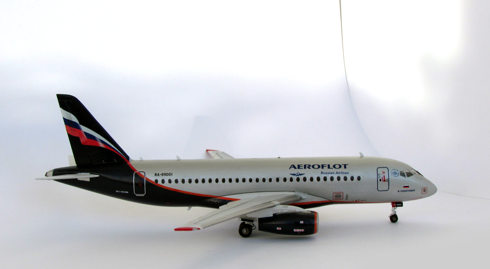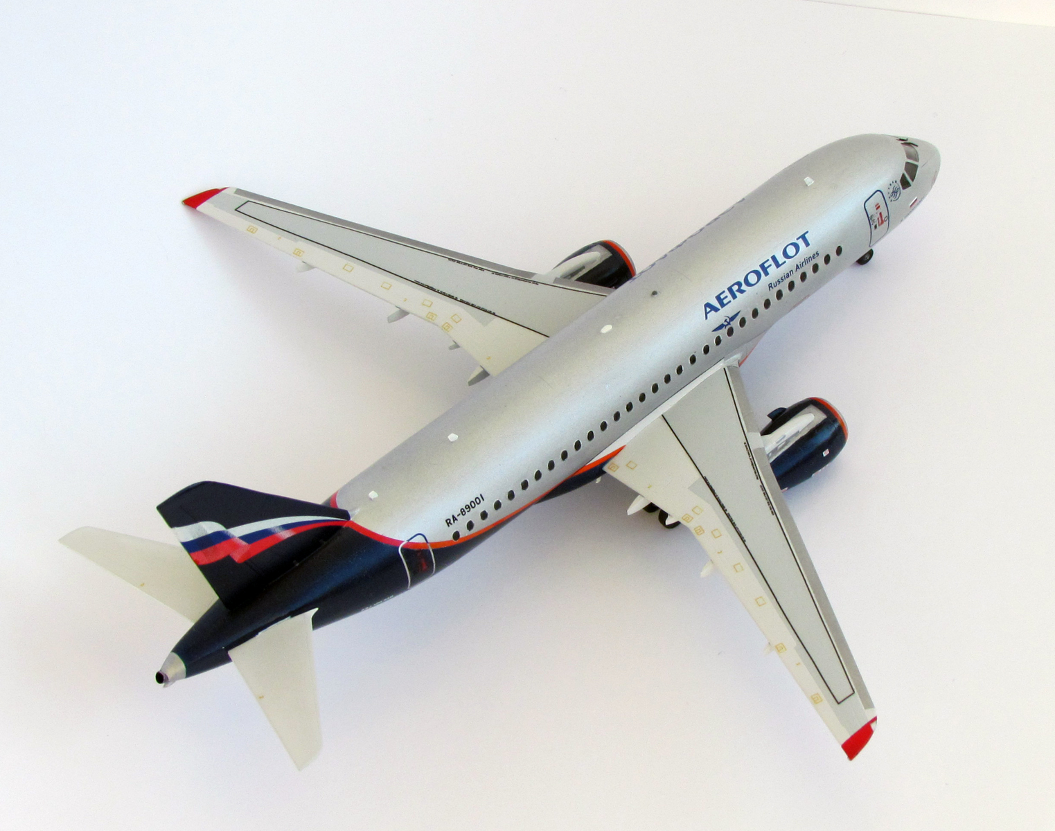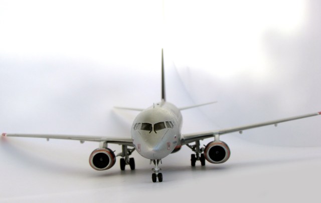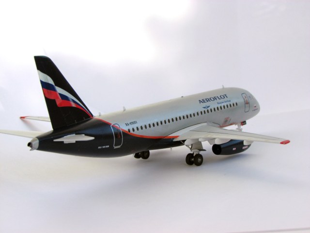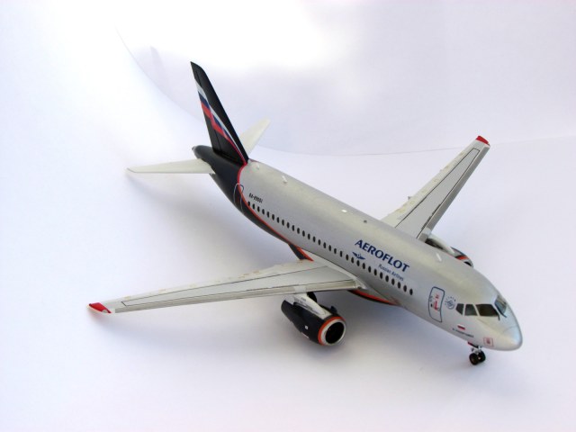 И снова я)) Но уже с моделью самолета Суперджет-100. Моделька достаточно простенькая, но с остеклением пришлось изрядно помучиться, чтобы полностью ликвидировать стык с фюзеляжем.
