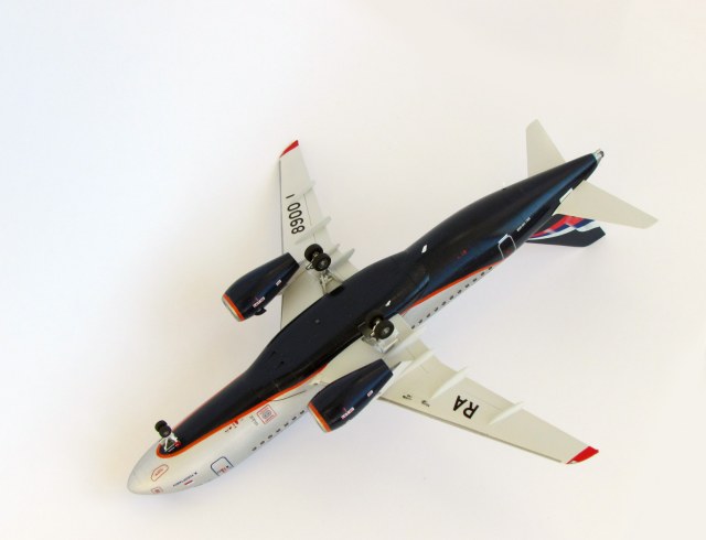 Всем большое спасибо за проявленный интерес!)) По синему цвету: красил Тамия X-3, он, конечно темноват, просто мне понравился такой насыщенный цвет. Надпись Аэрофлот светлее, поэтому и выглядит синей на фото) Ну а королевский синий на фото слишком темный оказался... Хотя на фото с брюха вроде ничего))