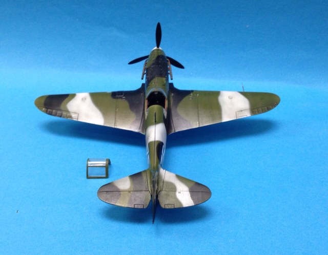 Расположение пятен как белых, так и черных - не соответствует фотографиям (да и боковикам). Да и вообще белый камо на его самолет наносился щеткой с четко выраженными полосами покраски(неравномерностью покраски). Ни о каких плавных переходах аэрографом и речи нет.