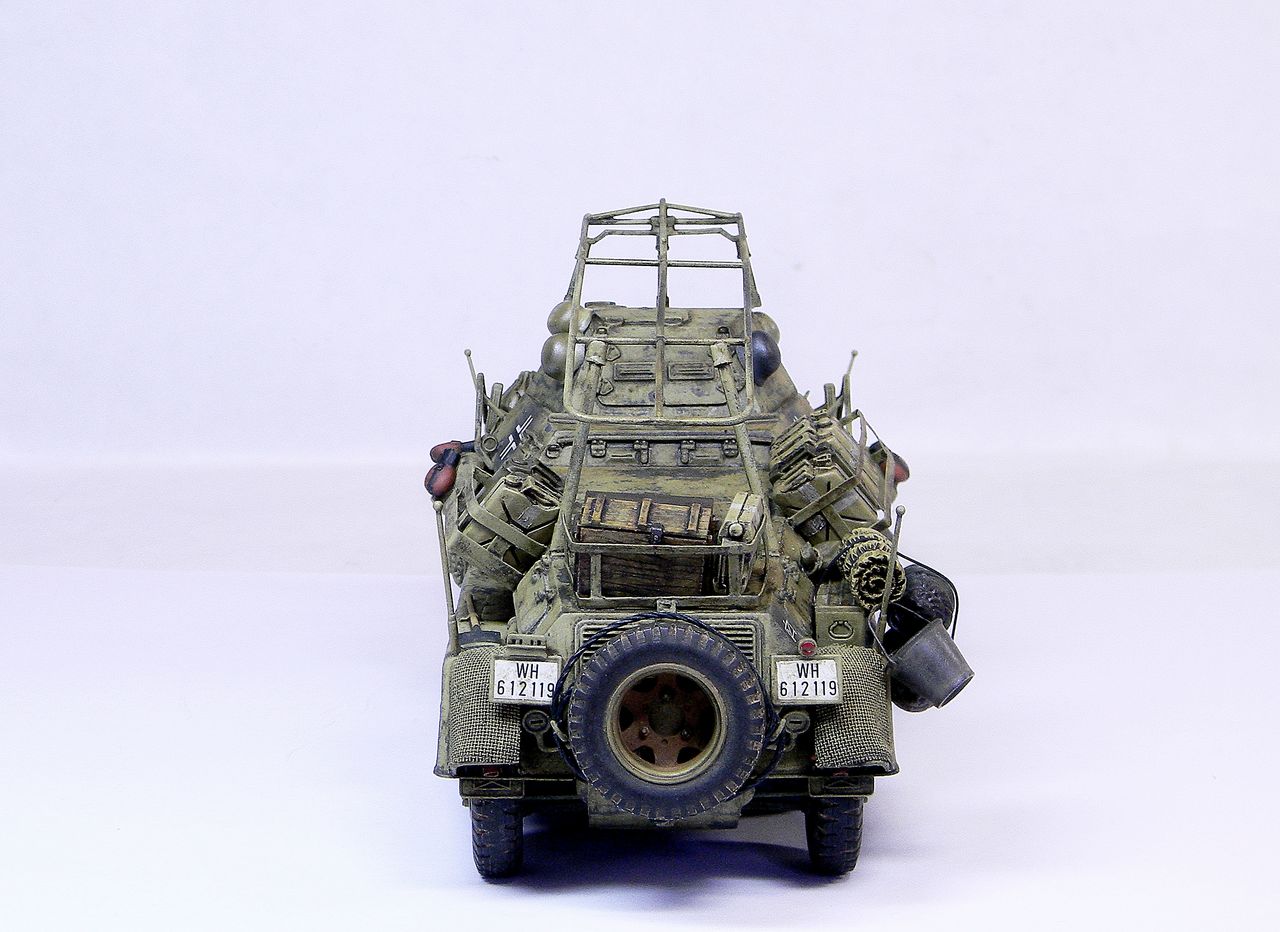 Отлично удалось передать сам дух машин Африканского корпуса и пустыни: всё своё вожу с собой. Не взял воды, топлива и еды - можно и не найти.