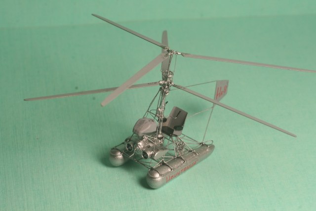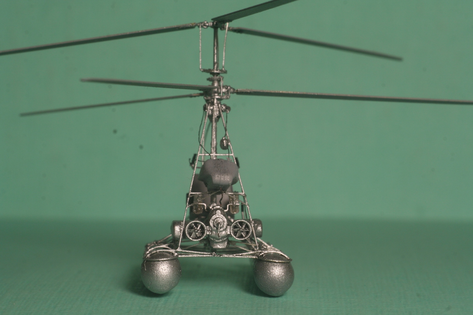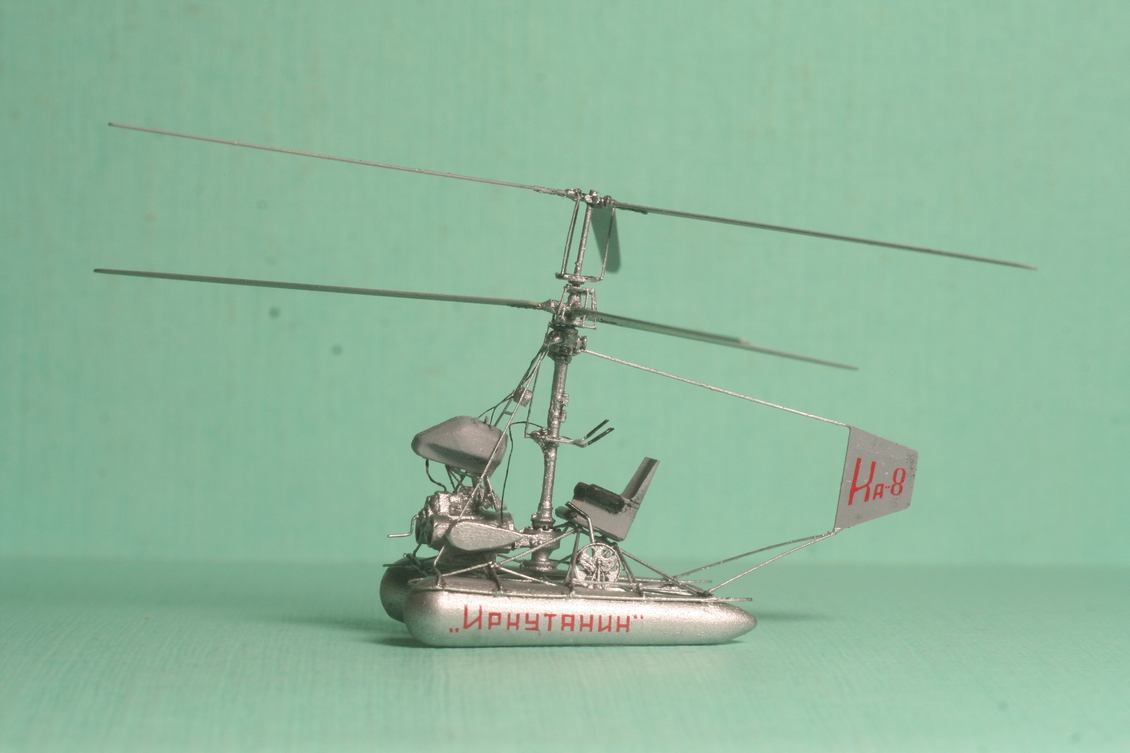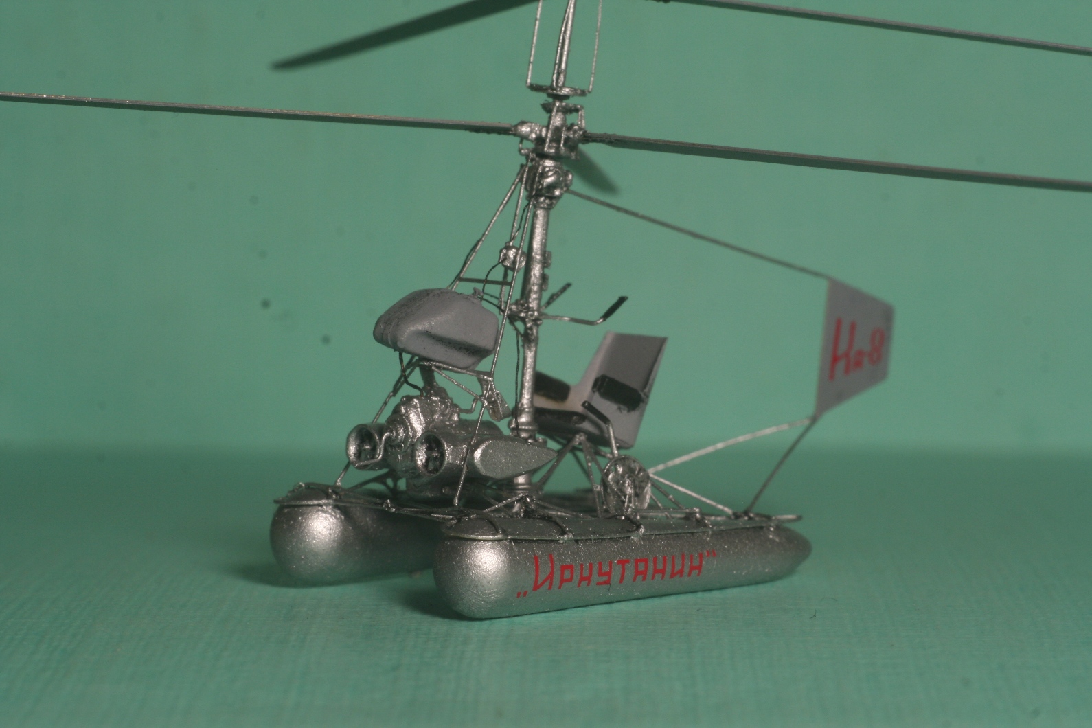<<...Наконец, первый вертолет Ка-8 был собран и установлен на небольшой постамент. Выглядел он очень красиво. На легкой стальной ферме, покоящейся на двух серебристых баллонах, стоял двигатель с центральным редуктором...>>