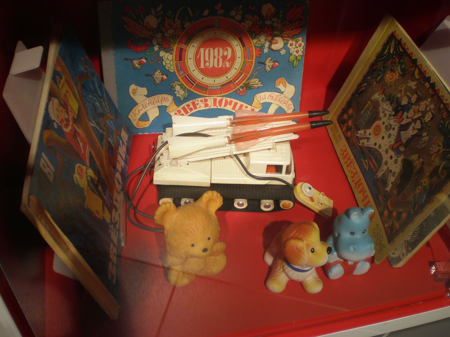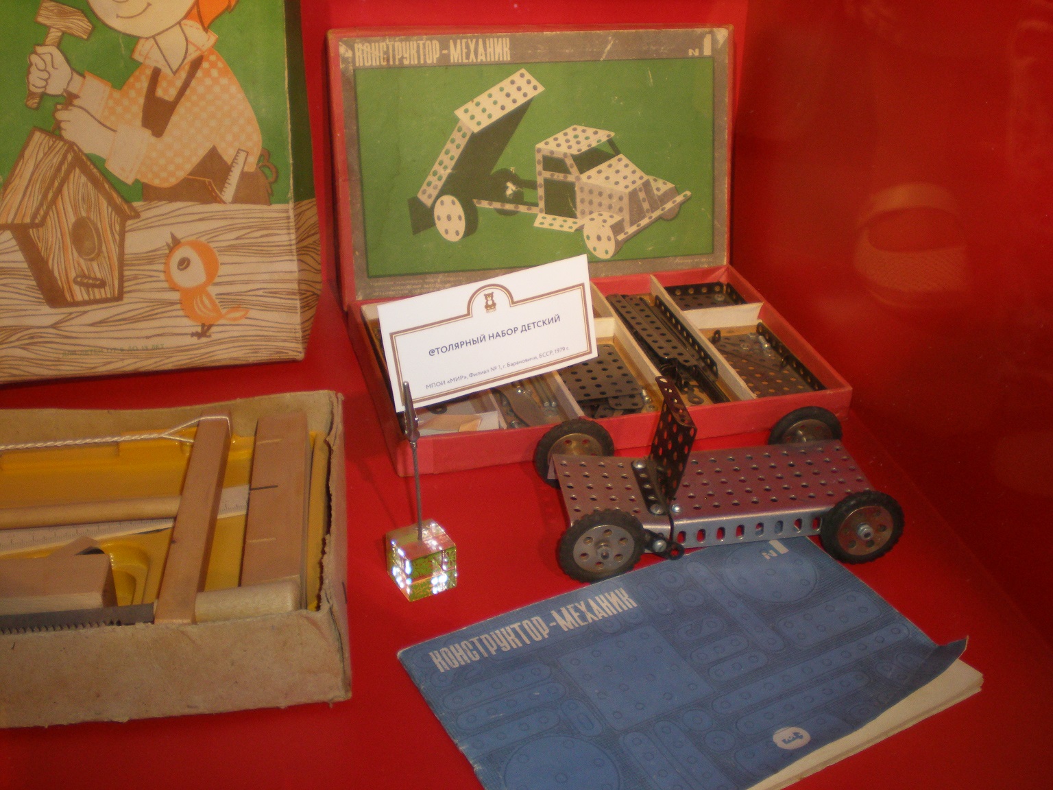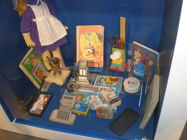 Многие экспонаты из своего детства припоминаю; модельки, солдатики, конструктор! Букварь, математика! Как сейчас себя вижу за деревянной партой с откидной полкой, 1985-й.