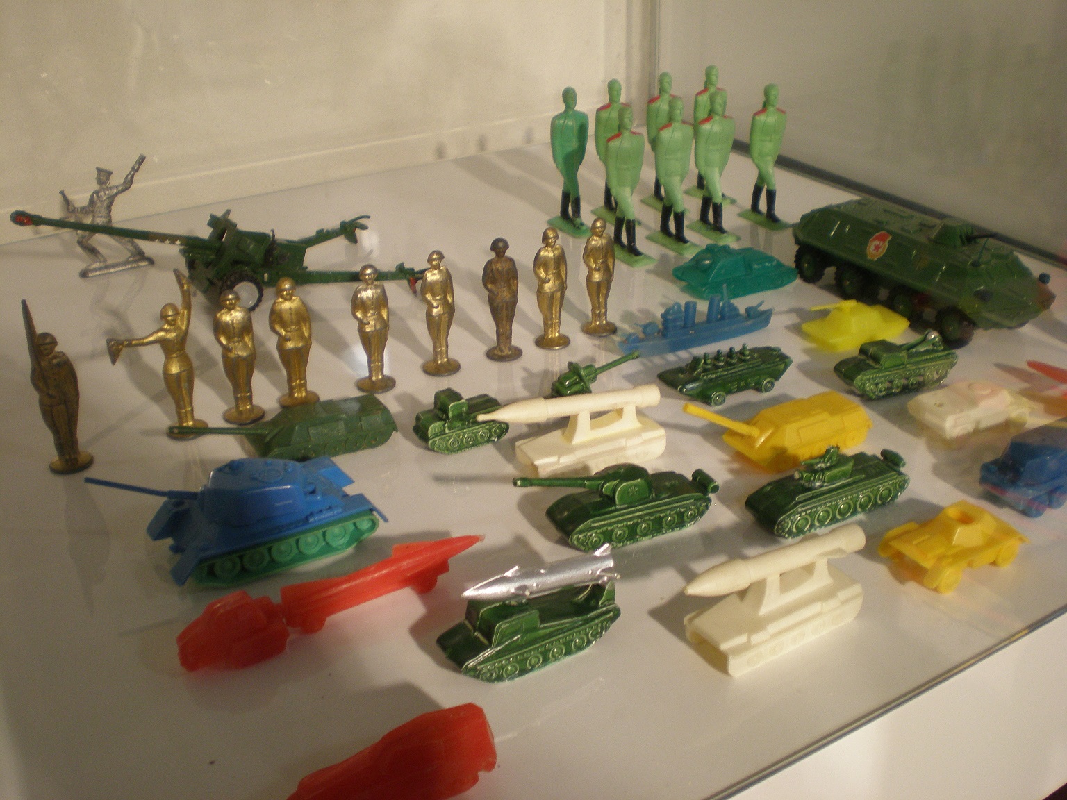 Да, едва ли уцелели - русская армия 1812-го года - пластмассовые фигурки (почти плоские) но раскрашенные. Кавалерия Гражданской - у меня ещё есть! "Оловянные" фигурки в боевых позах, гаубицы и пушки, велосипедист и мотоциклист, радист... Сколько их было!!! Ещё выпускались миниатюрные пластмассовые пушки, стрелявшие спичками (взвод - пружинкой). А на закате СССР начался (и закончился) расцвет отечественных железных дорог в НО.