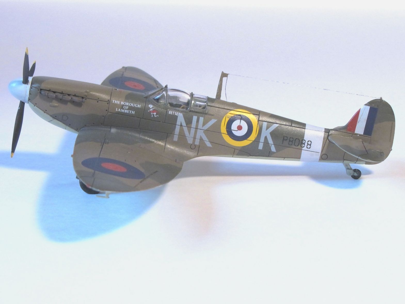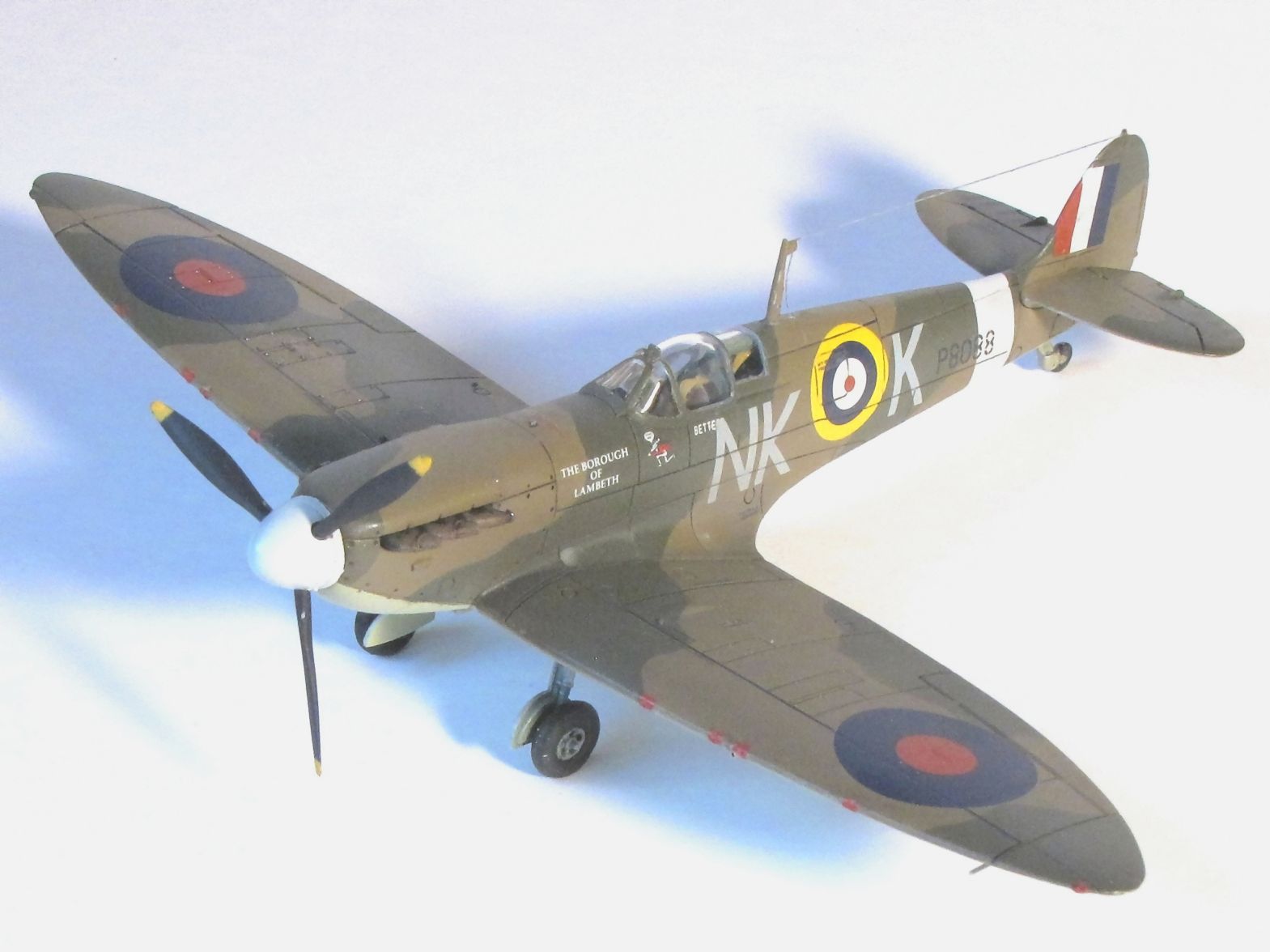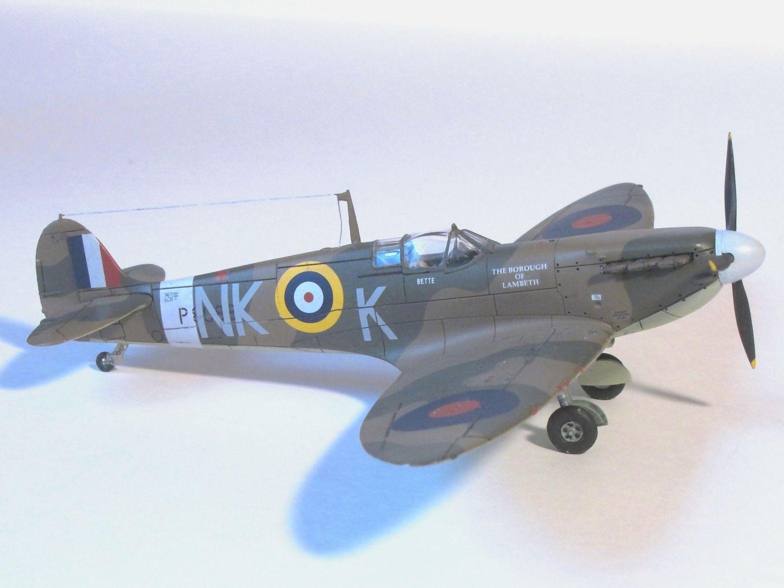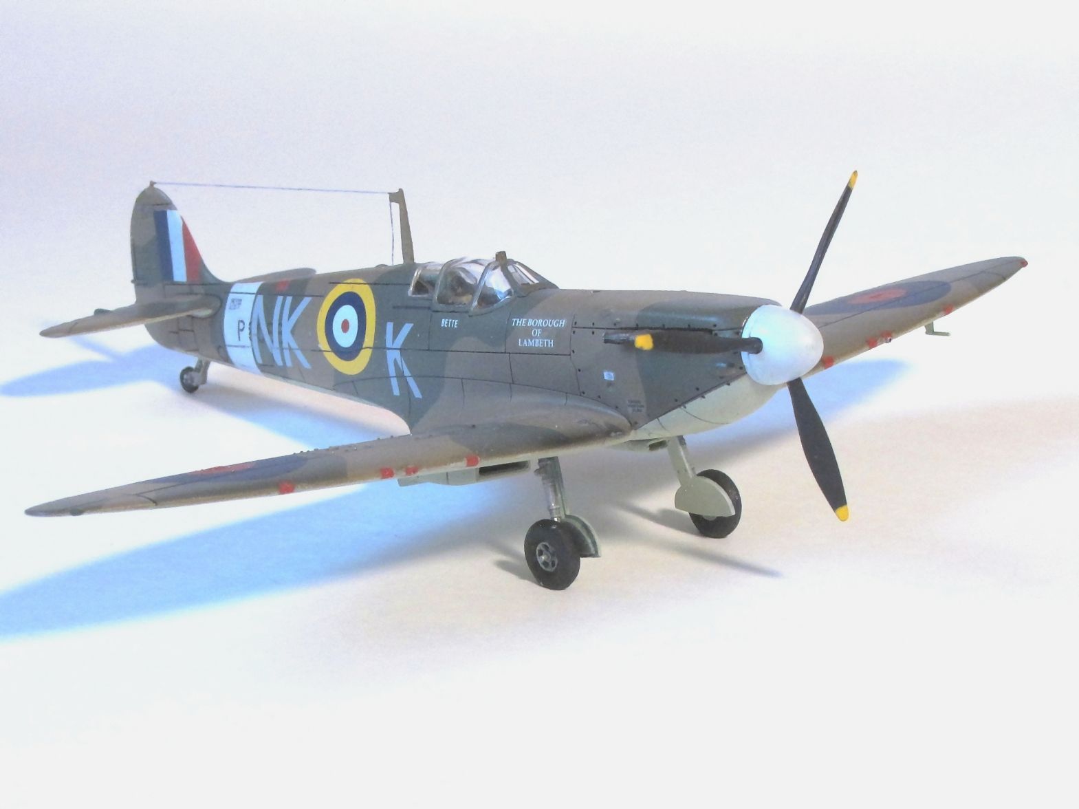 Здравствуйте, коллеги. Очередной мой "Спитфайр", на этот раз "двойка". Сборка изкоробочная, проблем со сборкой никаких, шпатлевка не понадобилась; добавил только прицел и привязные ремни в кабине пилота.