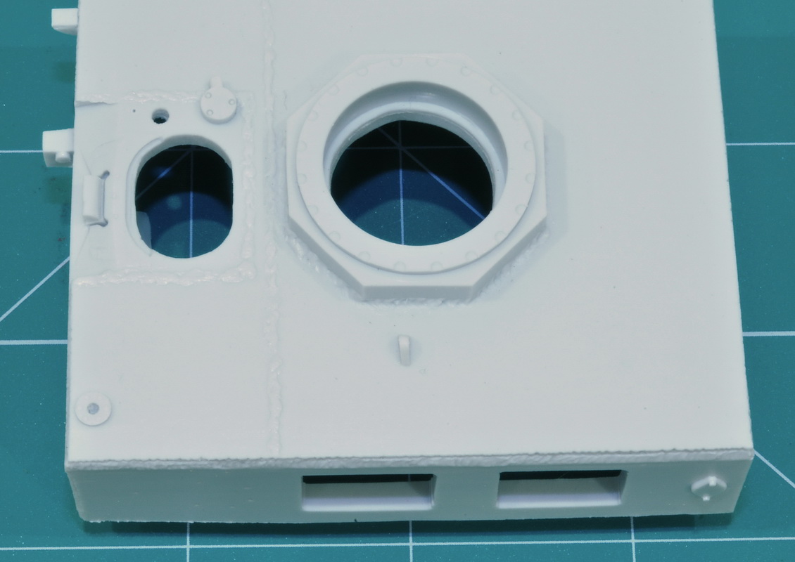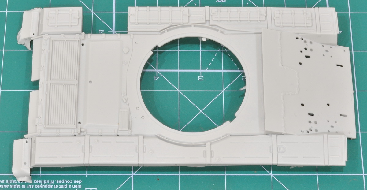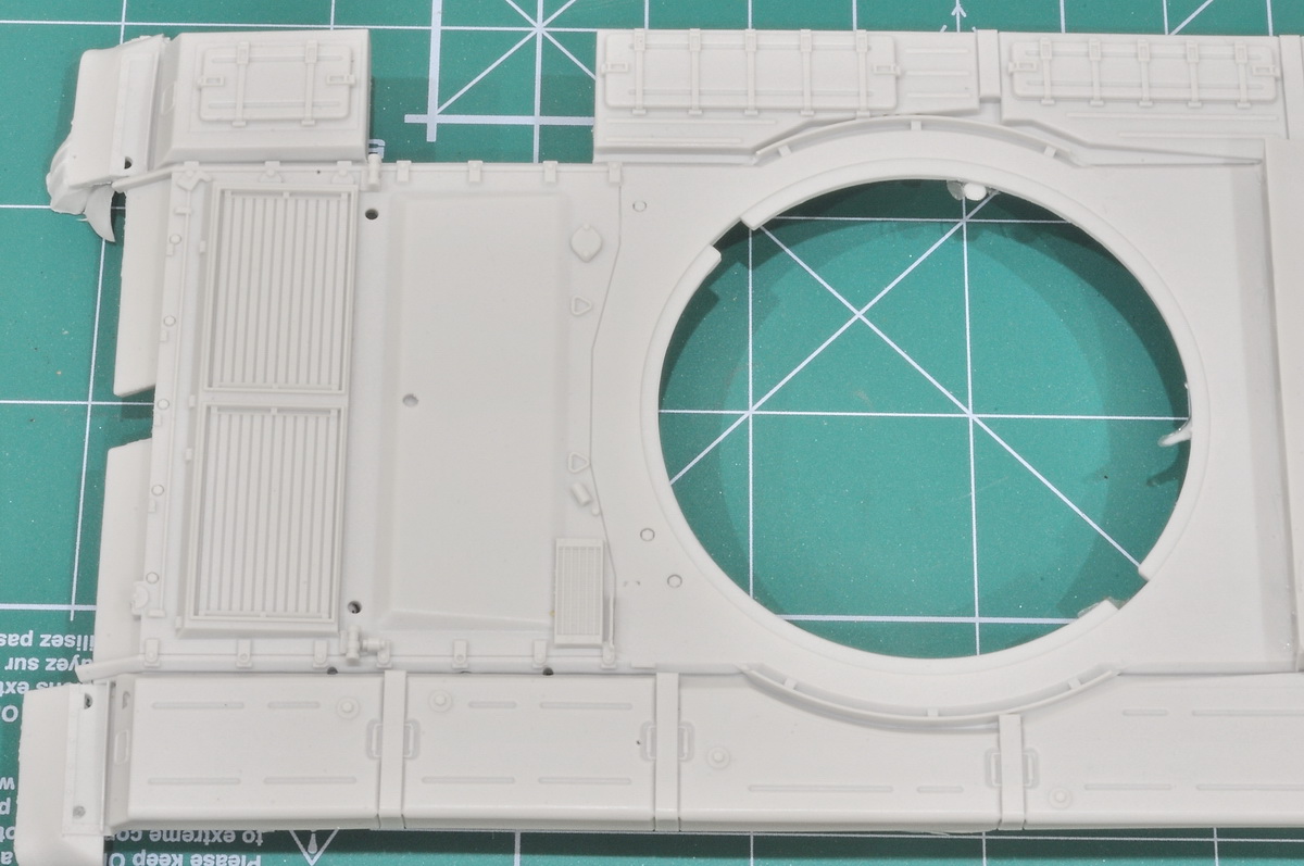 Верхняя часть корпуса, дана одной деталью, которая отлита идеально, детальки все проработаны очень качественно, нанесены сварные швы, ящички лючки придраться не к чему, смолы я повидал на своём веку много, поэтому знаю что говорю.