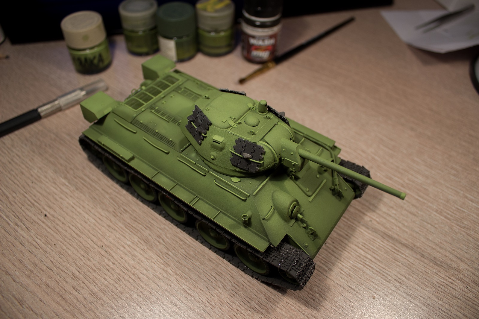 Первая большая модель советского танка времен ВОВ. Модель собиралась почти полностью из коробки. Не родные здесь траки (MasterClub металл). Из доработок: